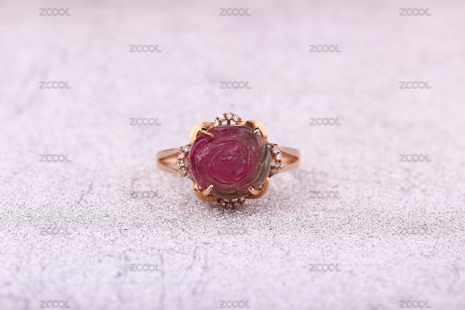 红宝石钻戒放在浅色的背景里