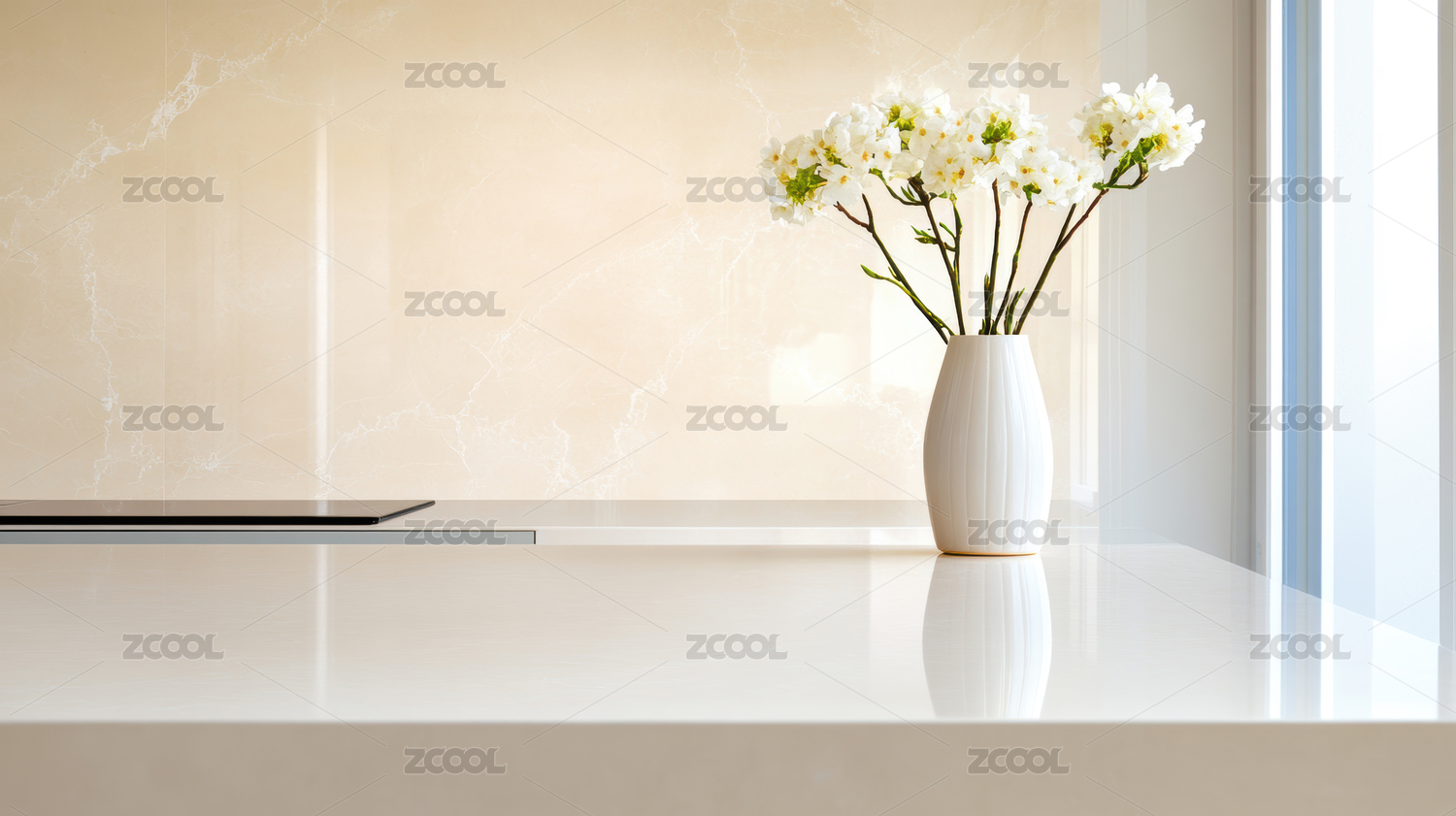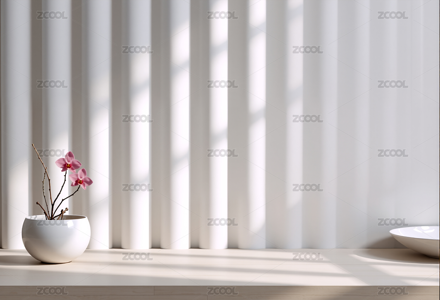 白色马蹄莲在简约空间光影中的静物电商展台
