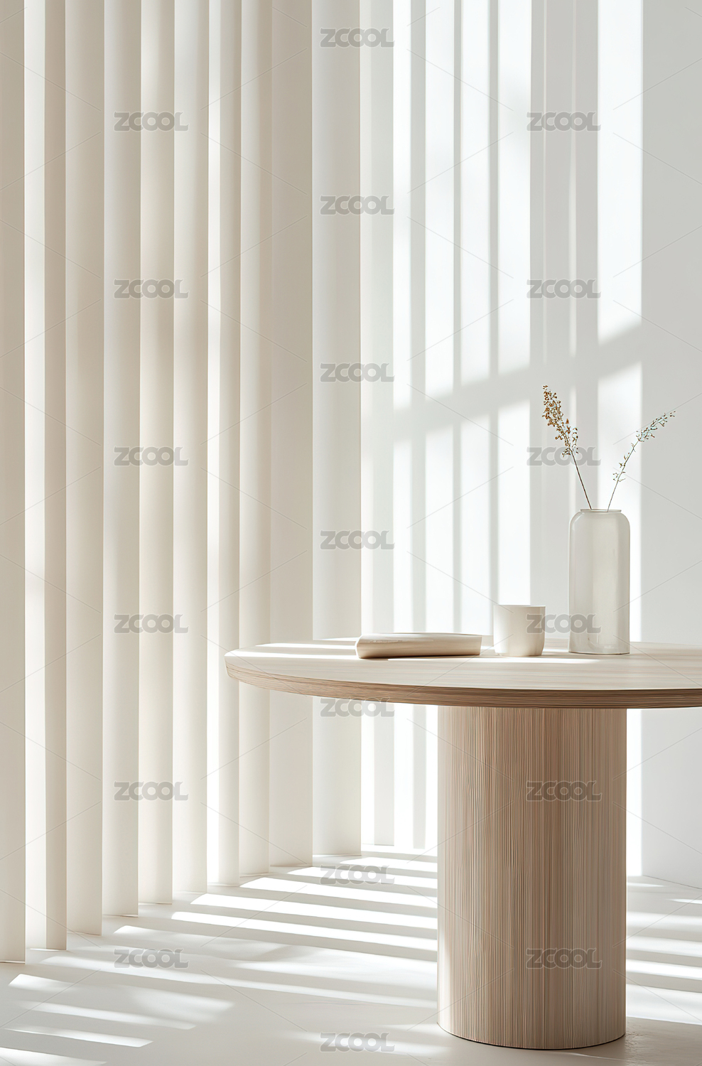 阳光洒落的简约室内空间
