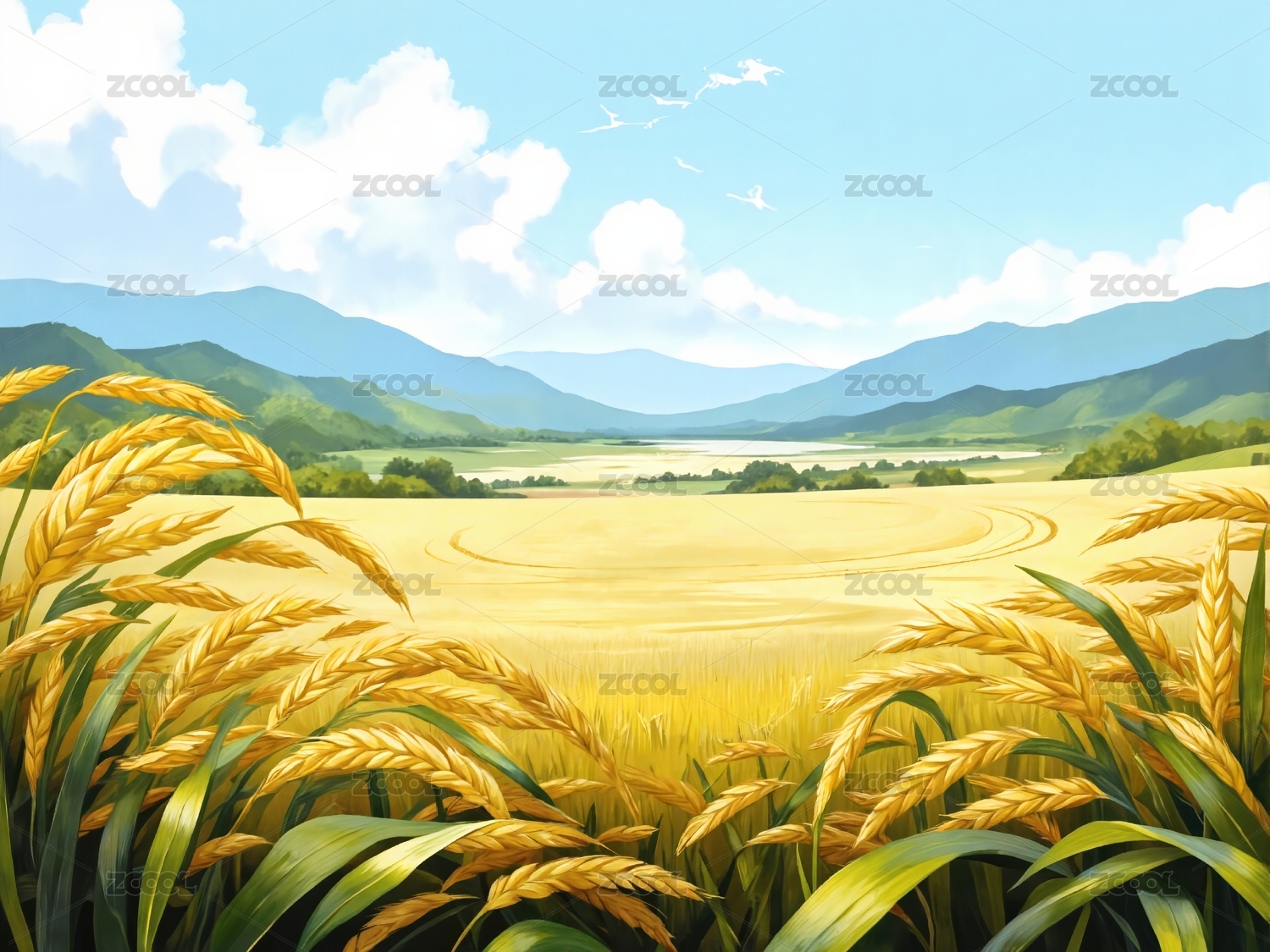 金色麦田丰收景象