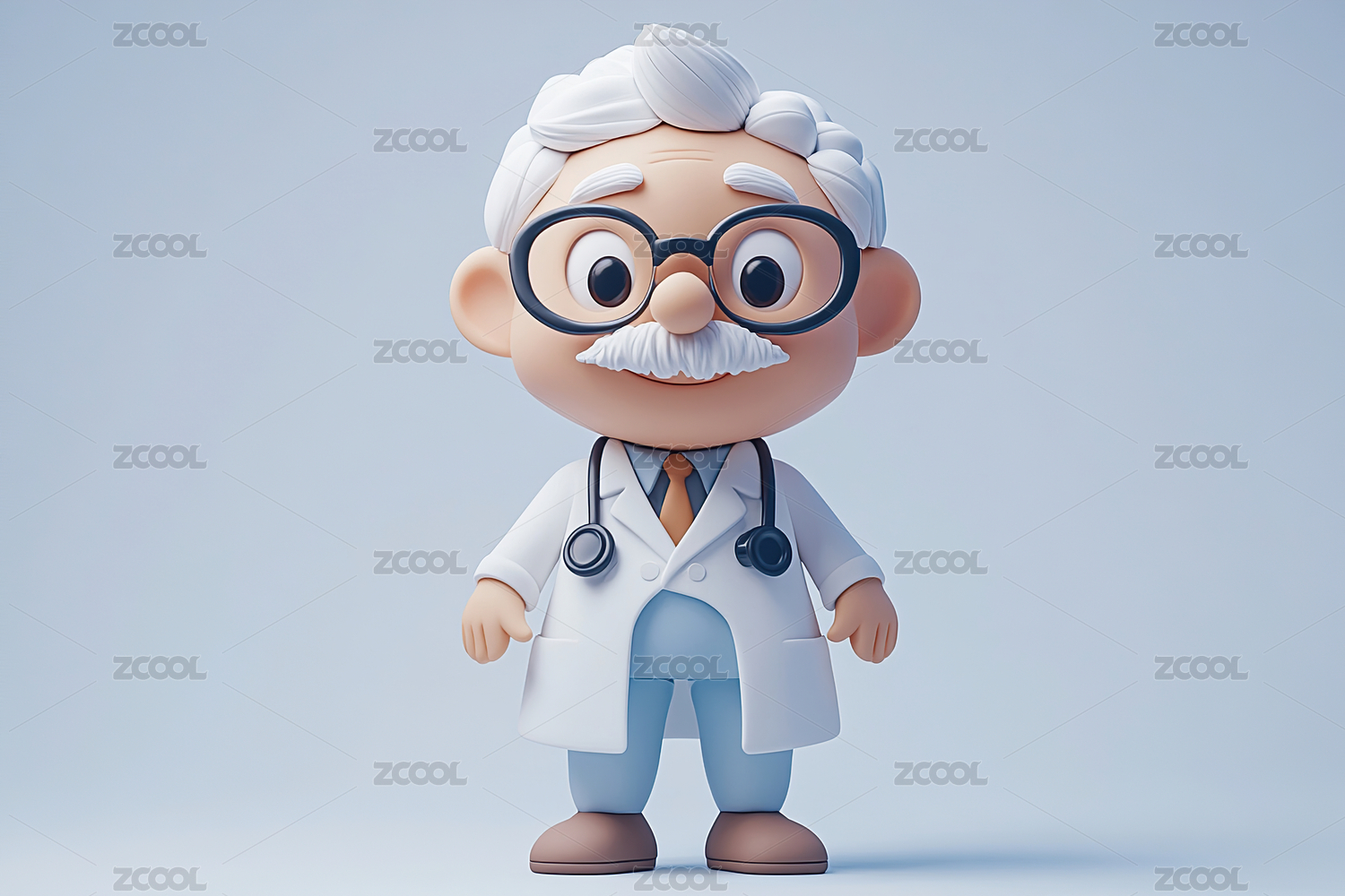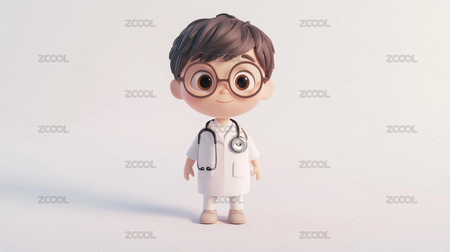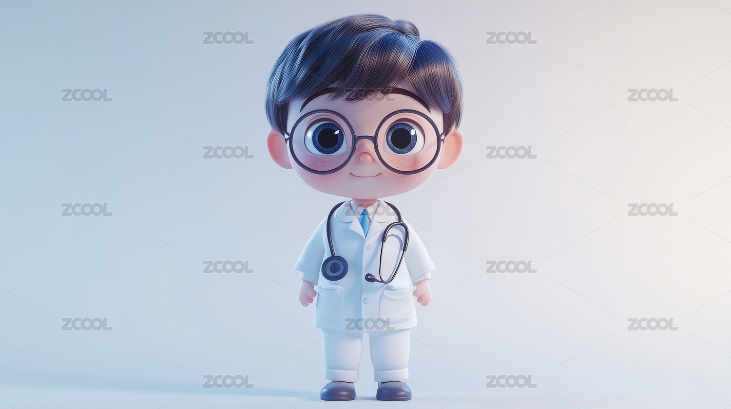 卡通医生,医生,医疗,卡通人物,人物,插画,3D,模型,白大褂,听诊器