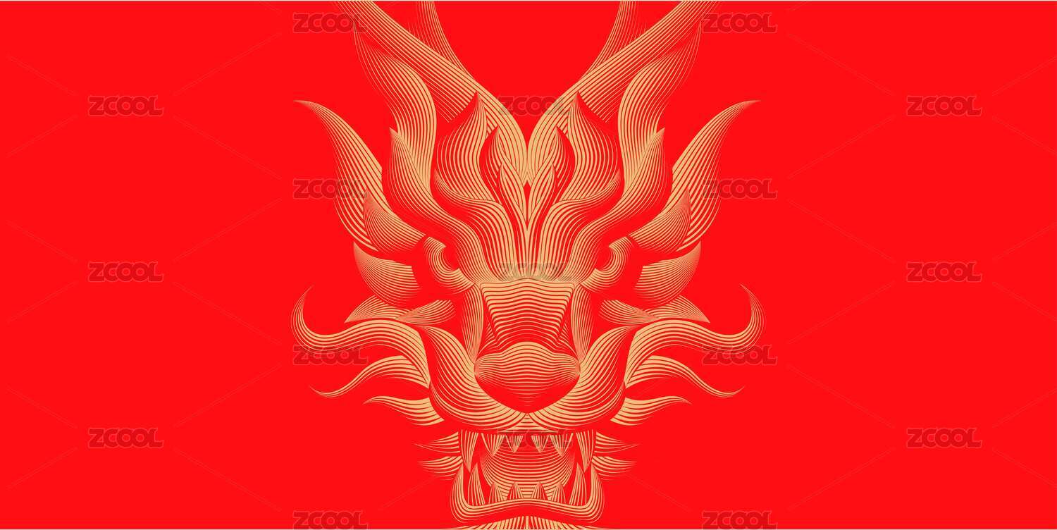 抽象,龙,摩尔纹,版画,龙年,生肖,烫金,东方,龙纹,插画