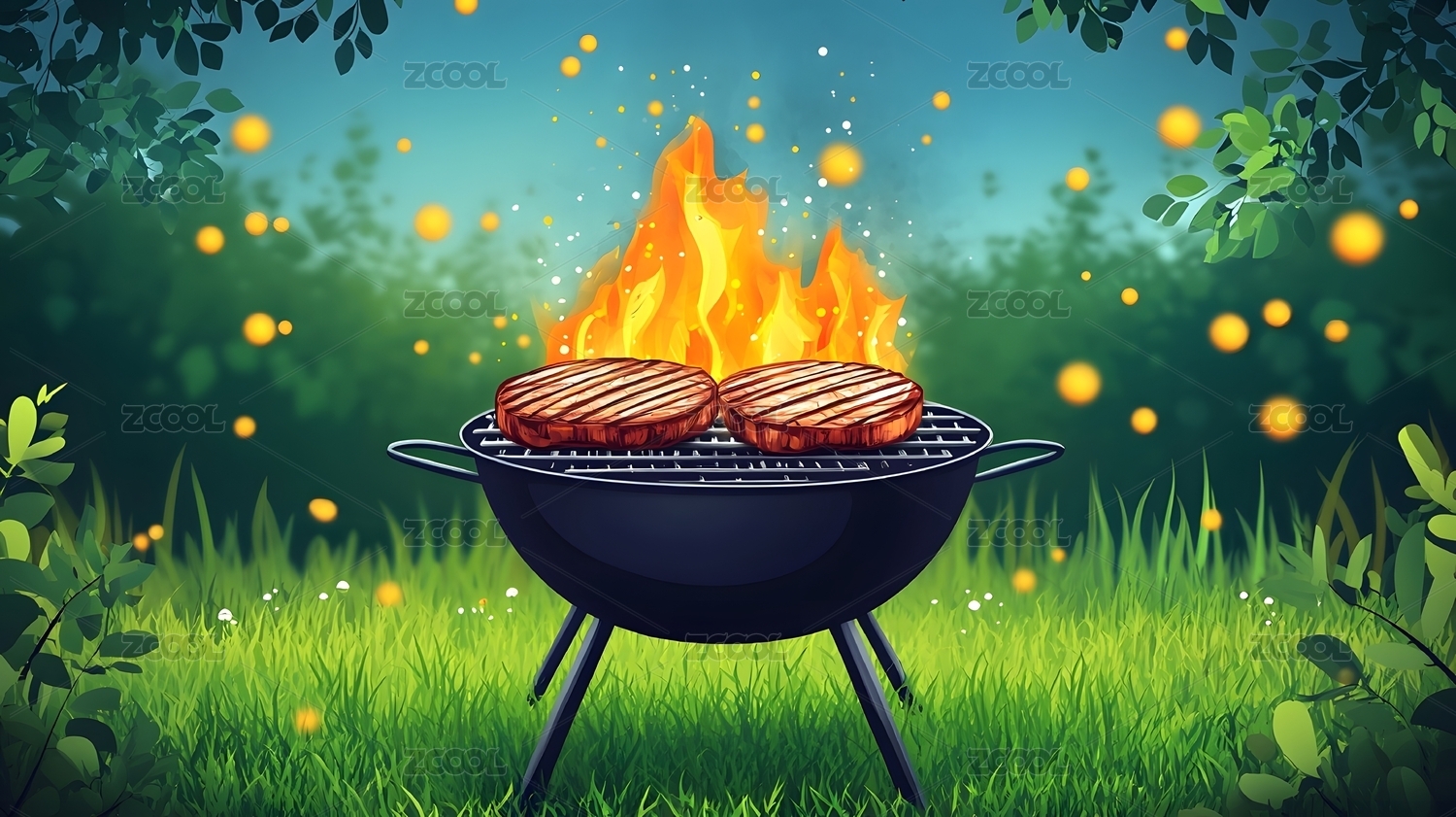 野餐,烧烤,背景,bbq,户外,插画,草地,森林,夜晚,火焰