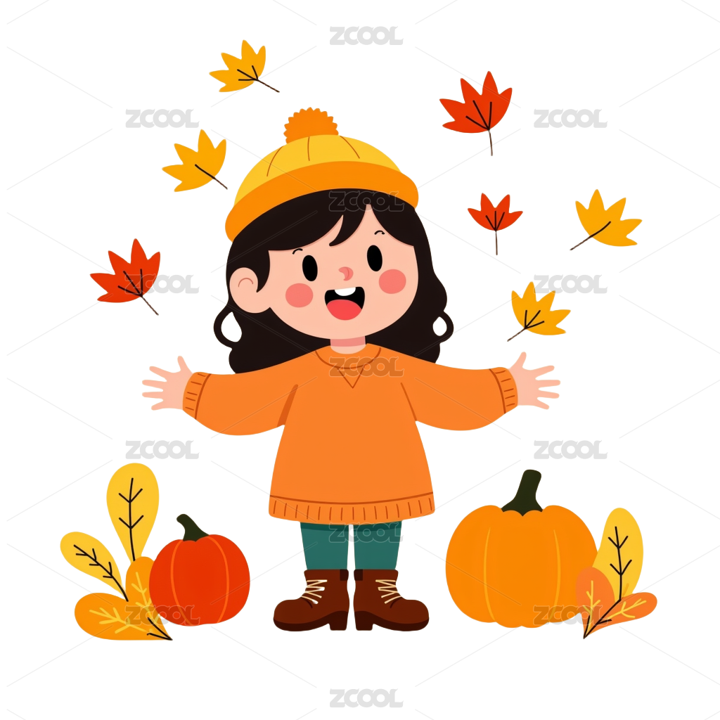 秋天自然户外小女孩卡通漫画插画