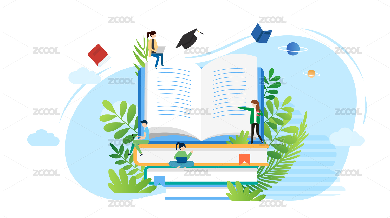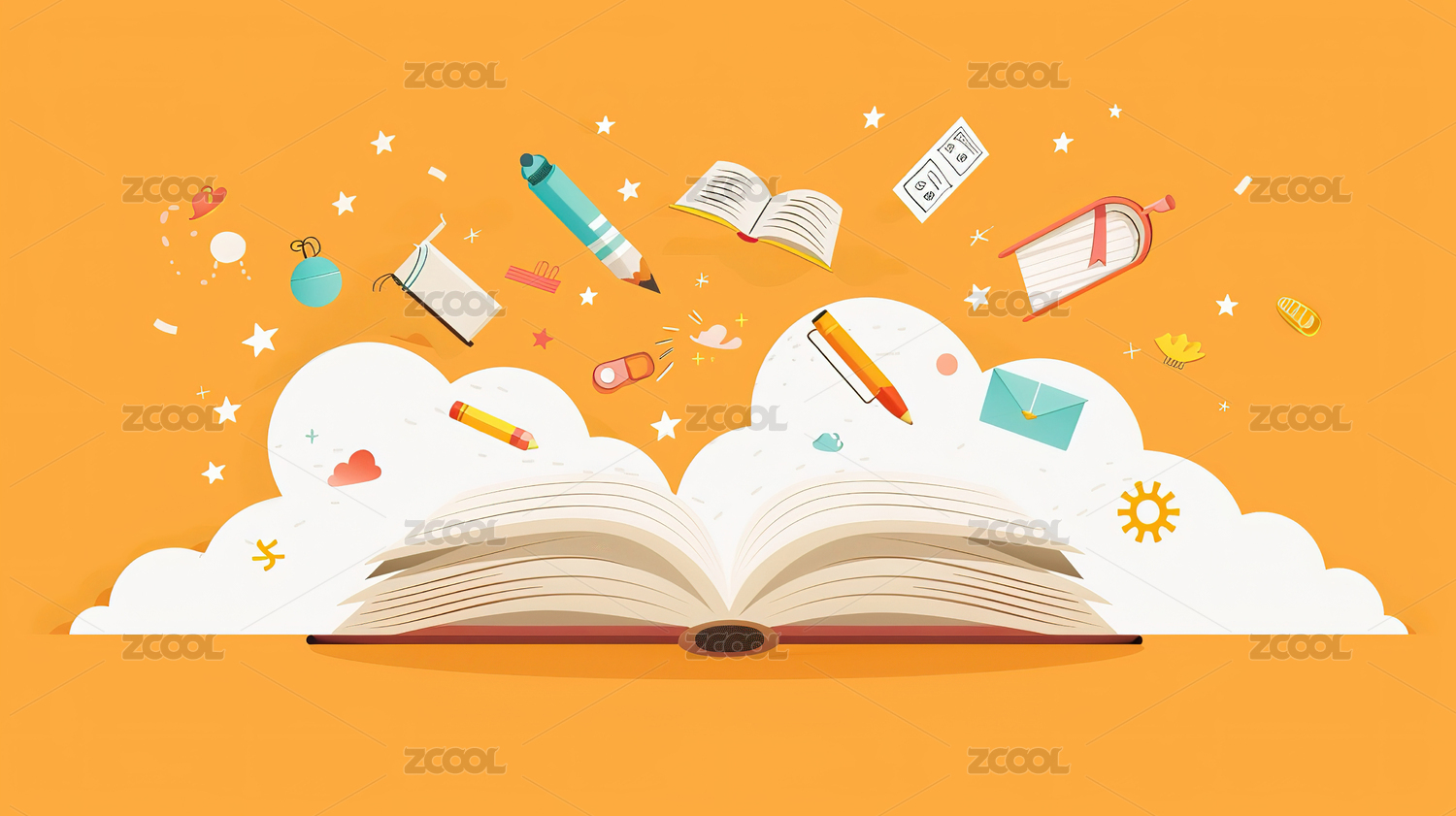 卡通手绘书籍翻开教育学校插画