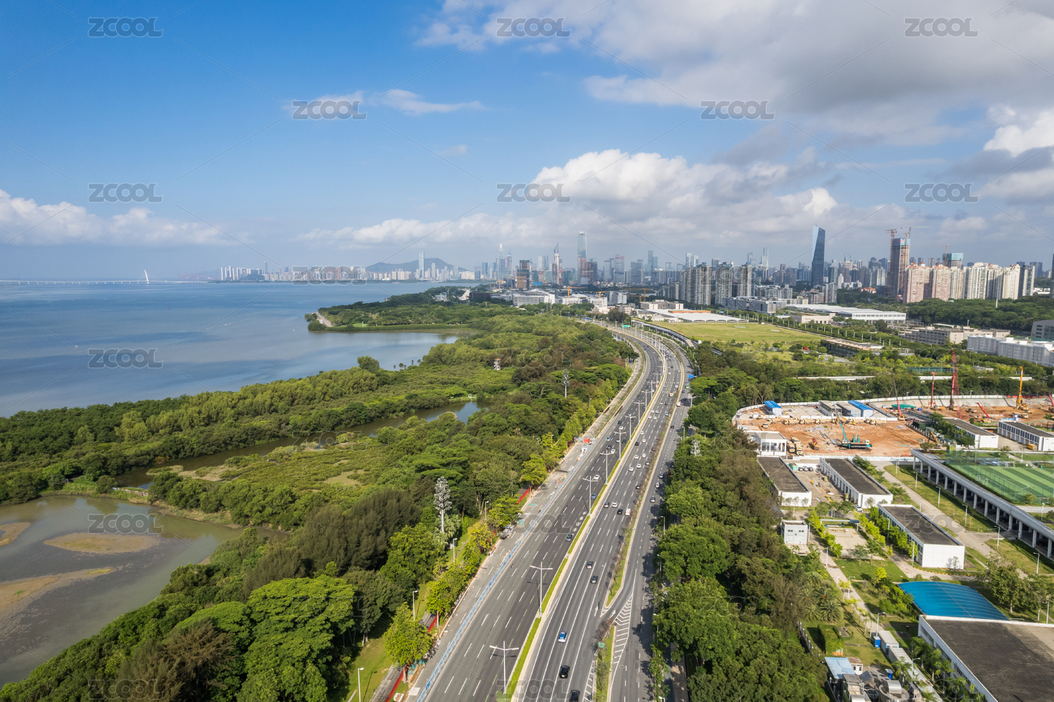 深圳,滨河大道,滨海大道,蓝天白云,车流,红树林,绿色,环保,深林城市,深林