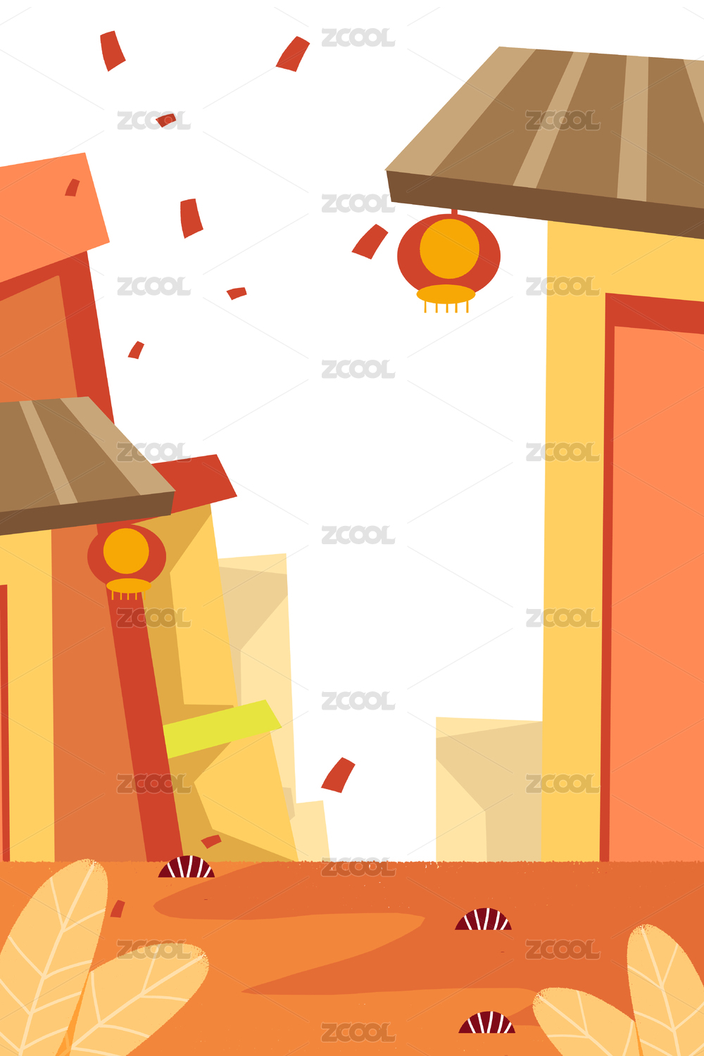 暖色调城市建筑街道背景竖图插画