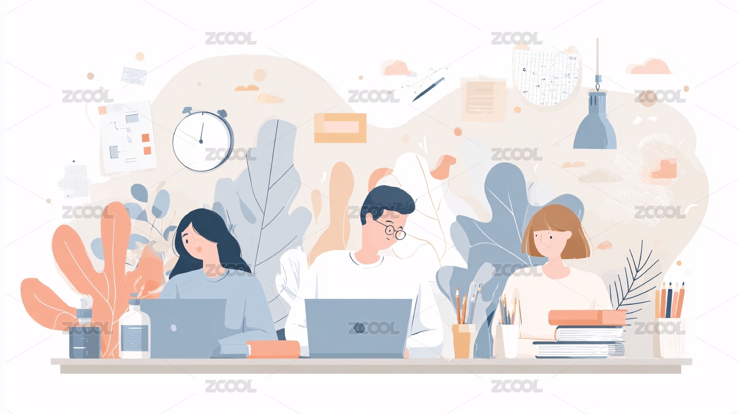 AIGC-工作学习场景插画