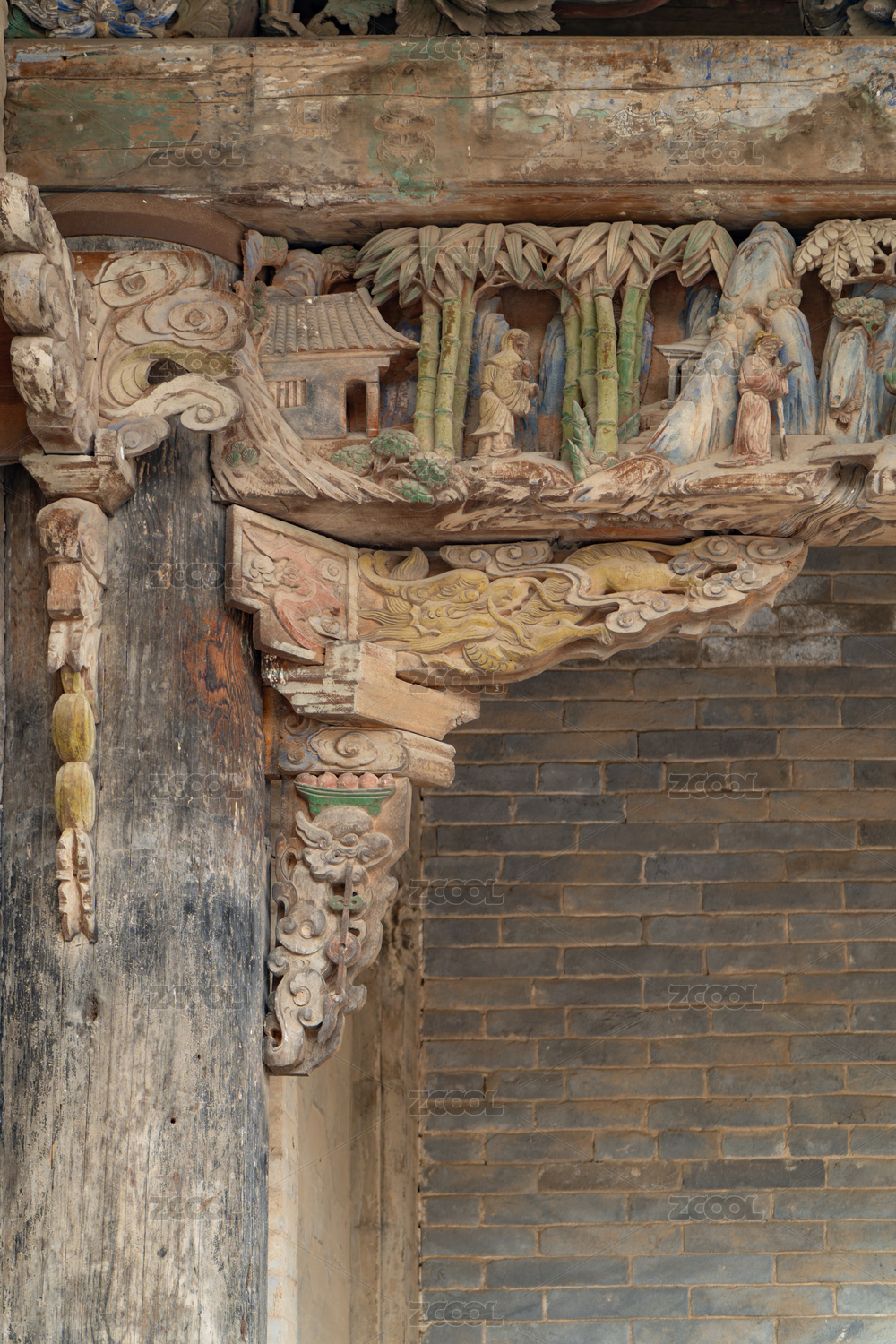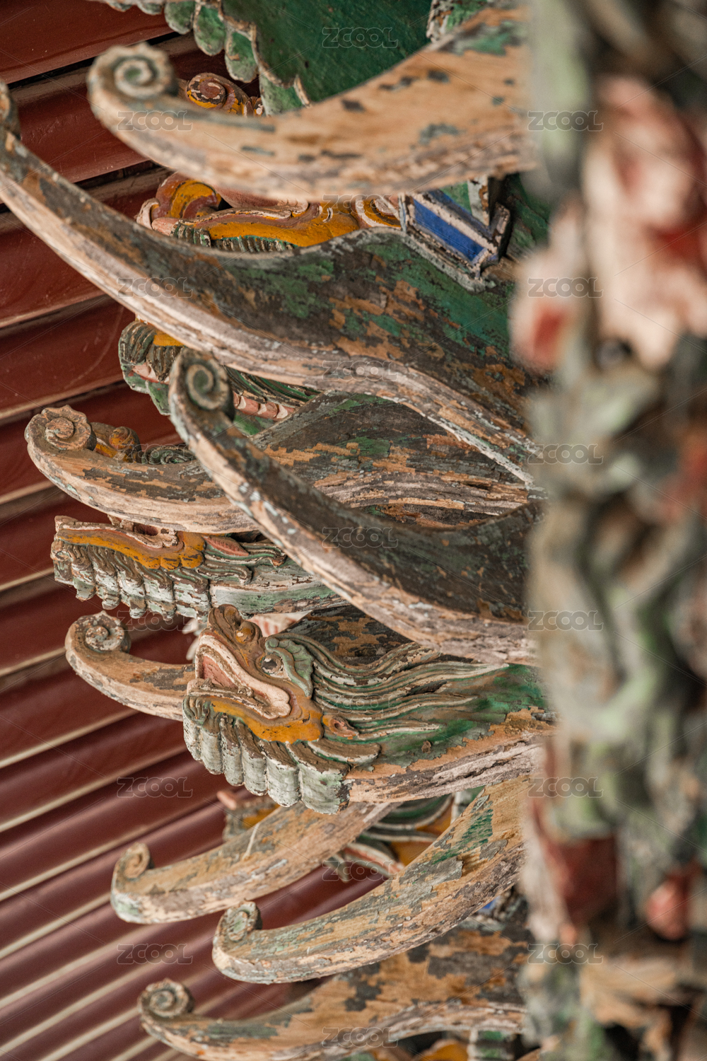 中国山西晋祠古建筑斗拱彩绘雕塑