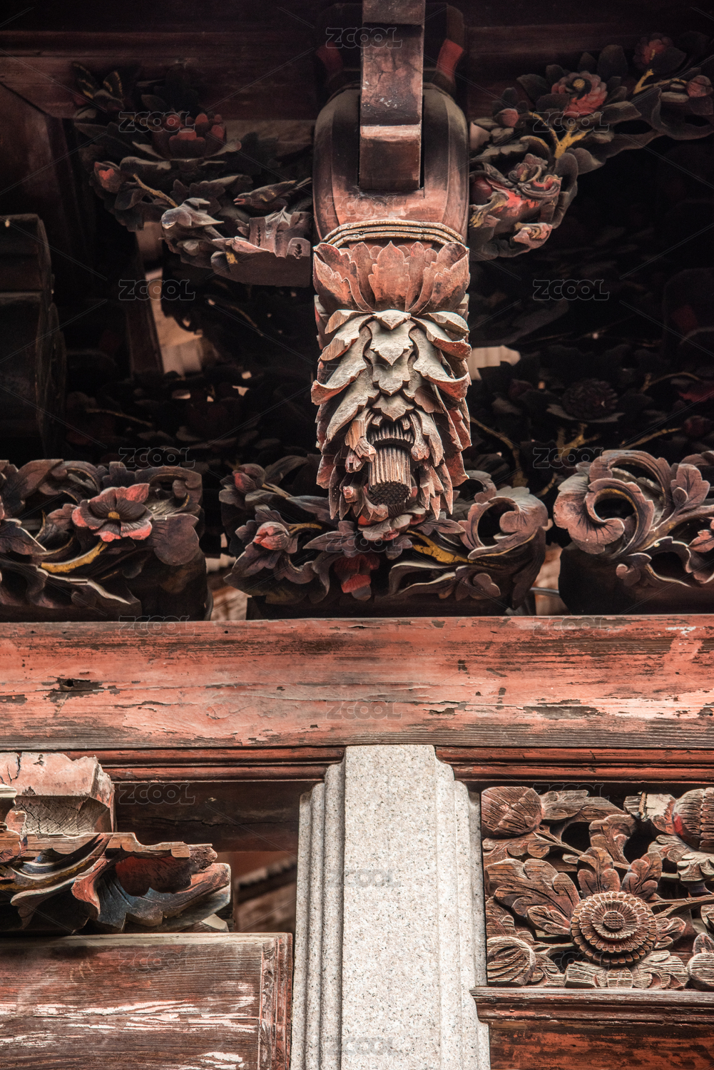 中国安徽黟县卢村木雕楼徽派建筑冬瓜梁木雕