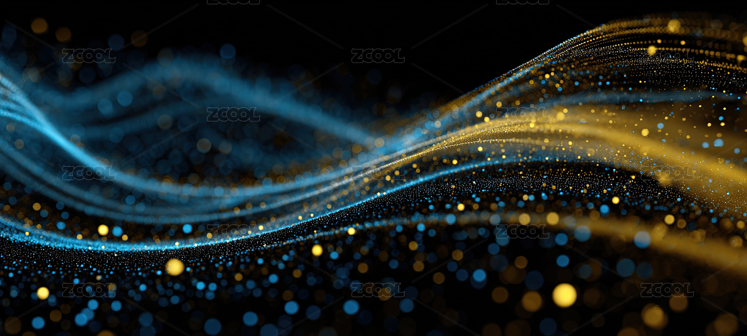 蓝色波浪线金色光点深底