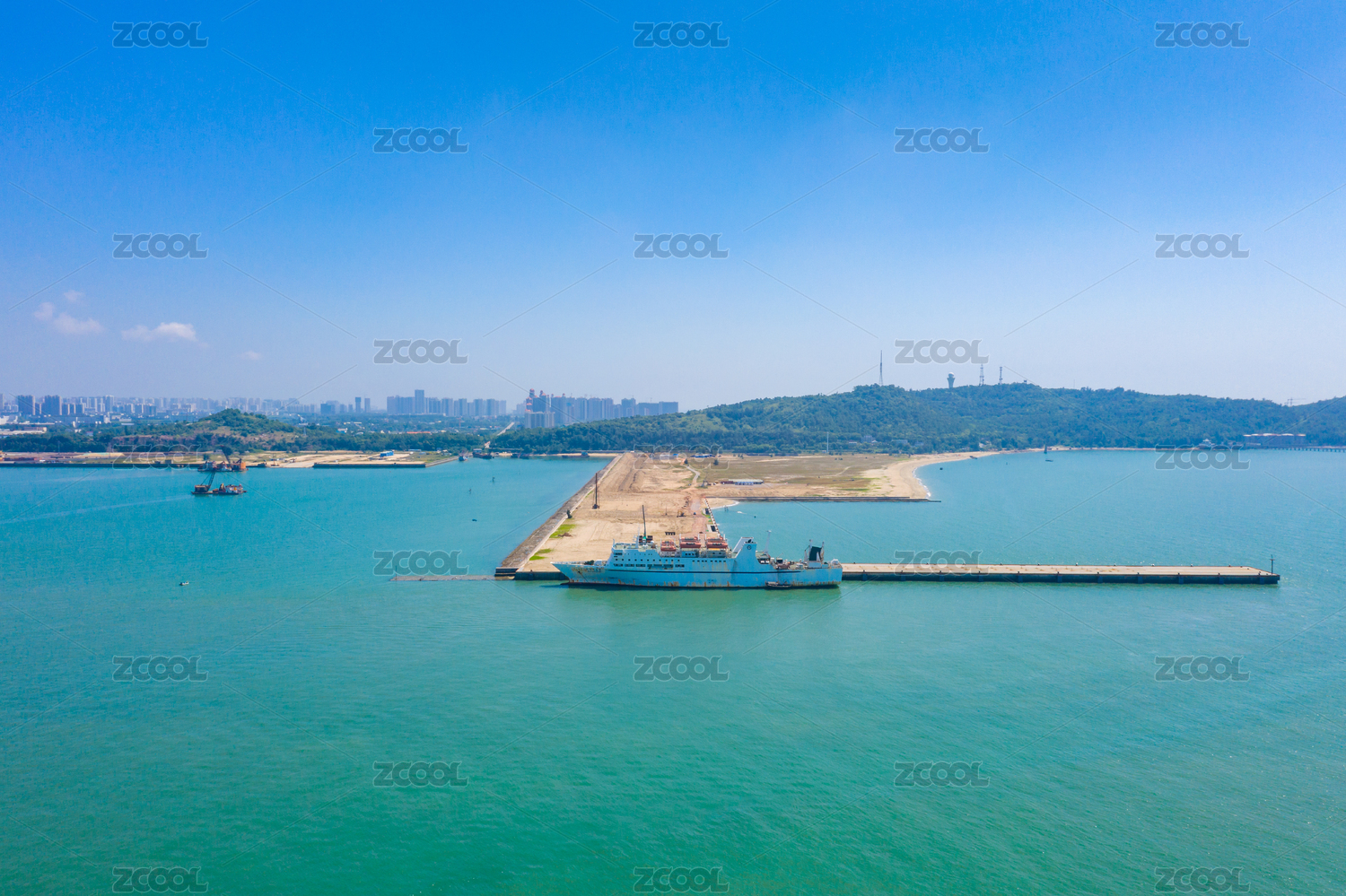 航拍海南海口新海港滚装码头客运综合枢纽站