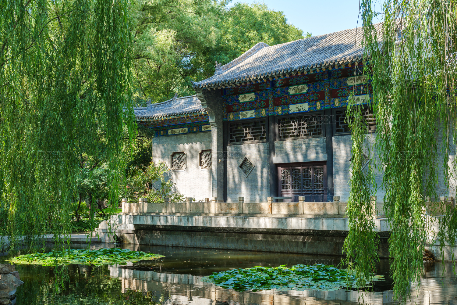 中国山东省济南市大明湖畔秋柳园中式古典门楼建筑