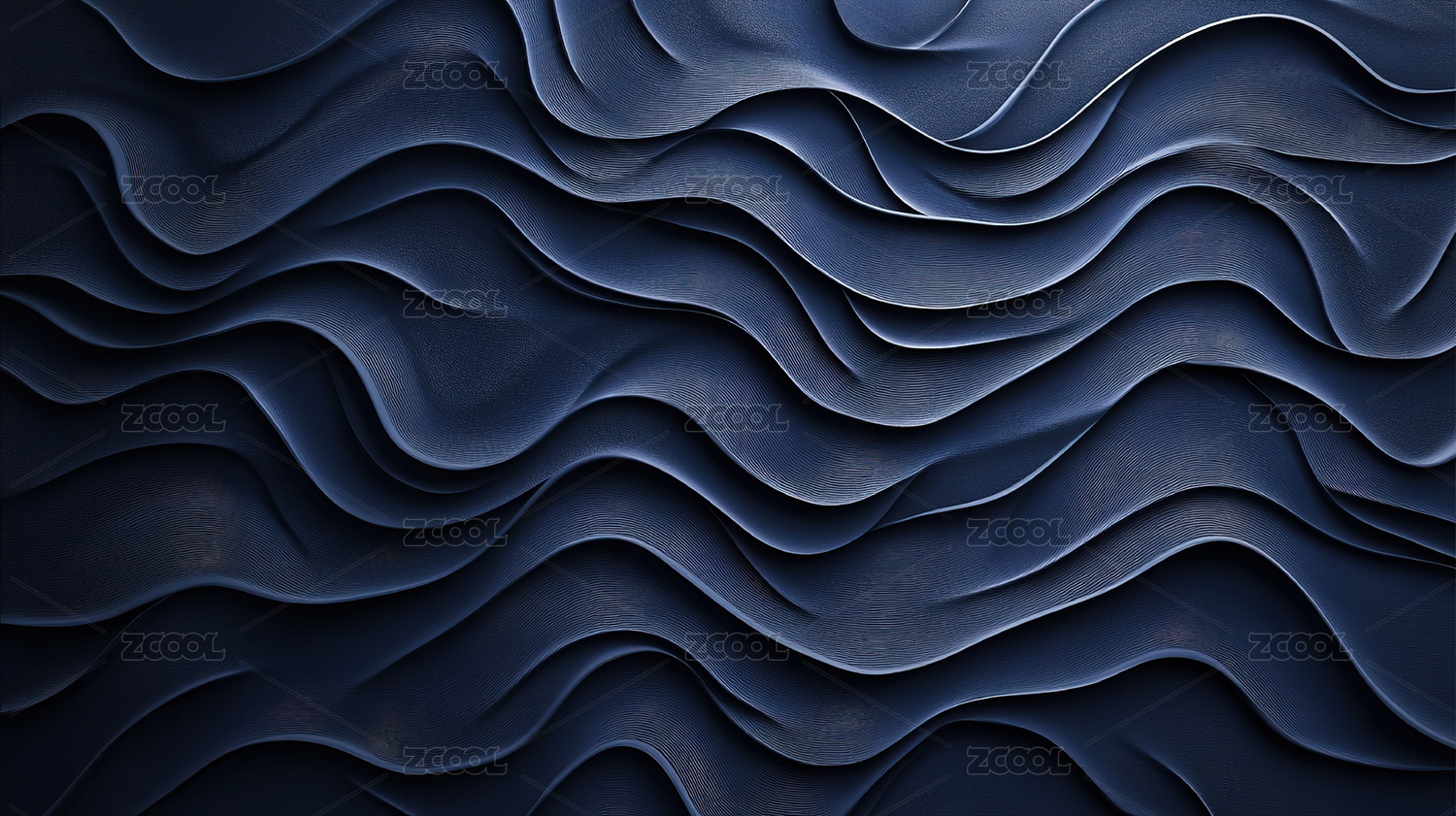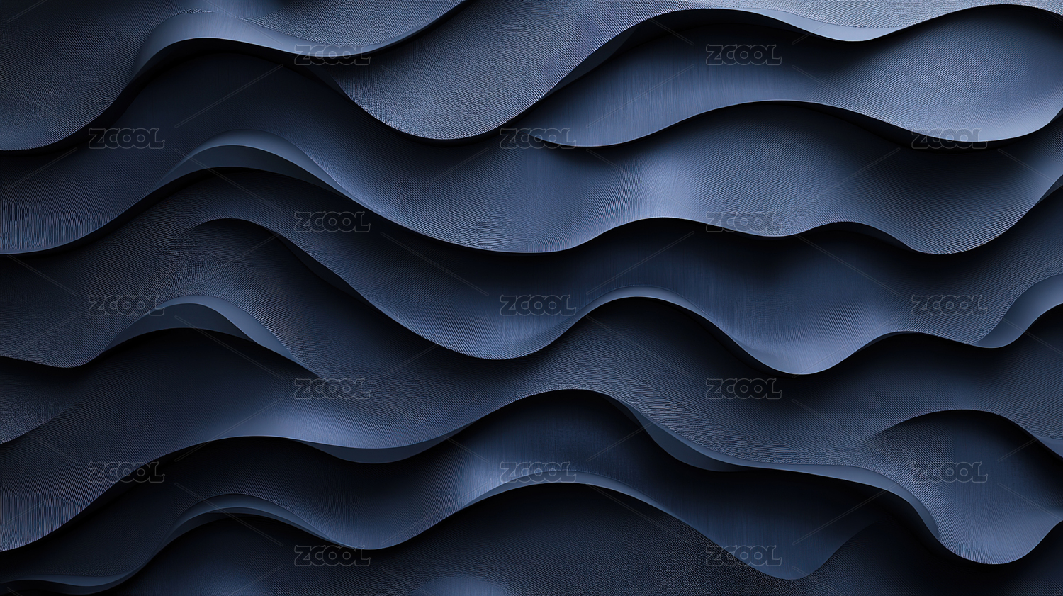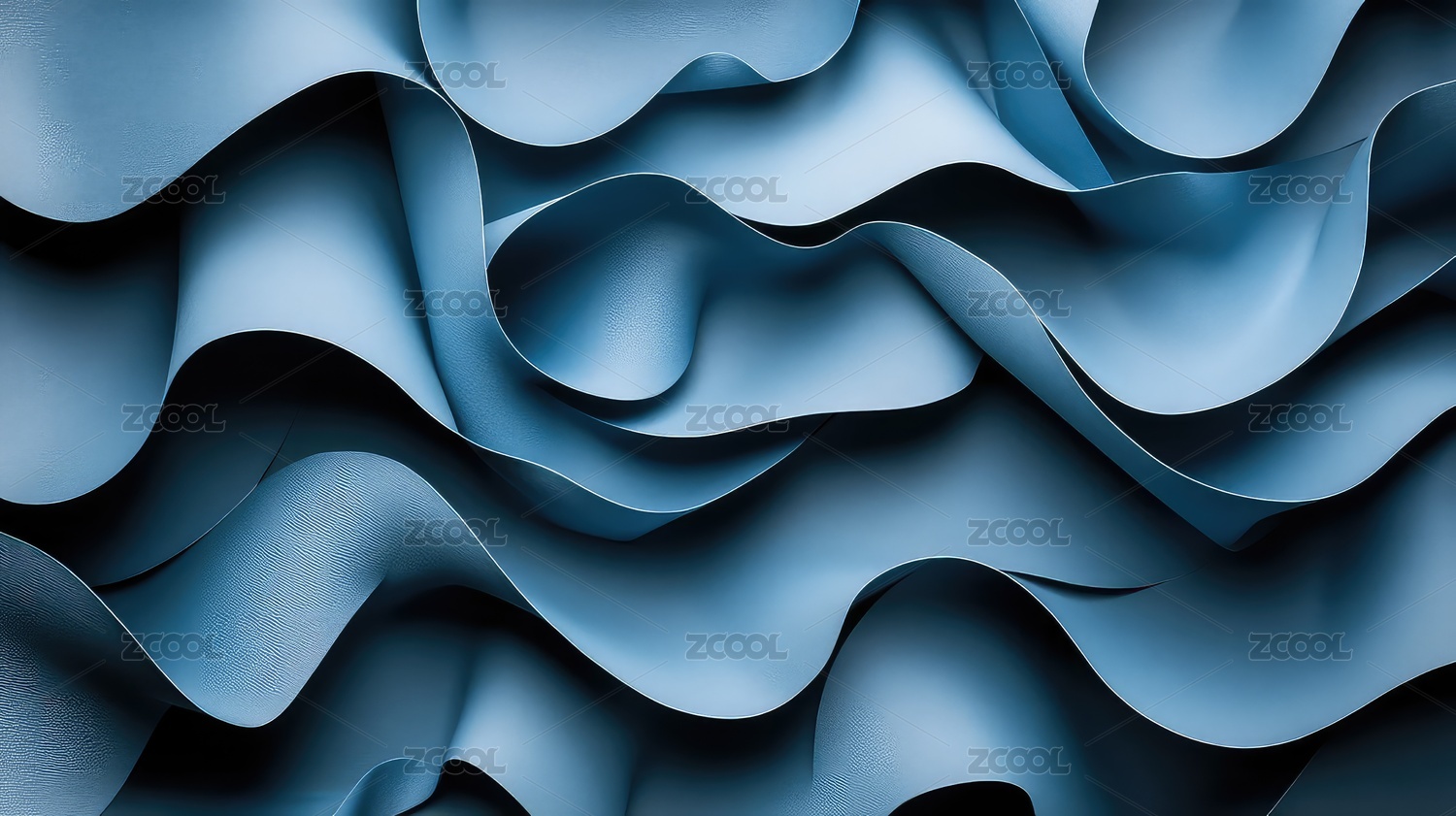 蓝色纸张堆叠形成的抽象波浪纹理图案