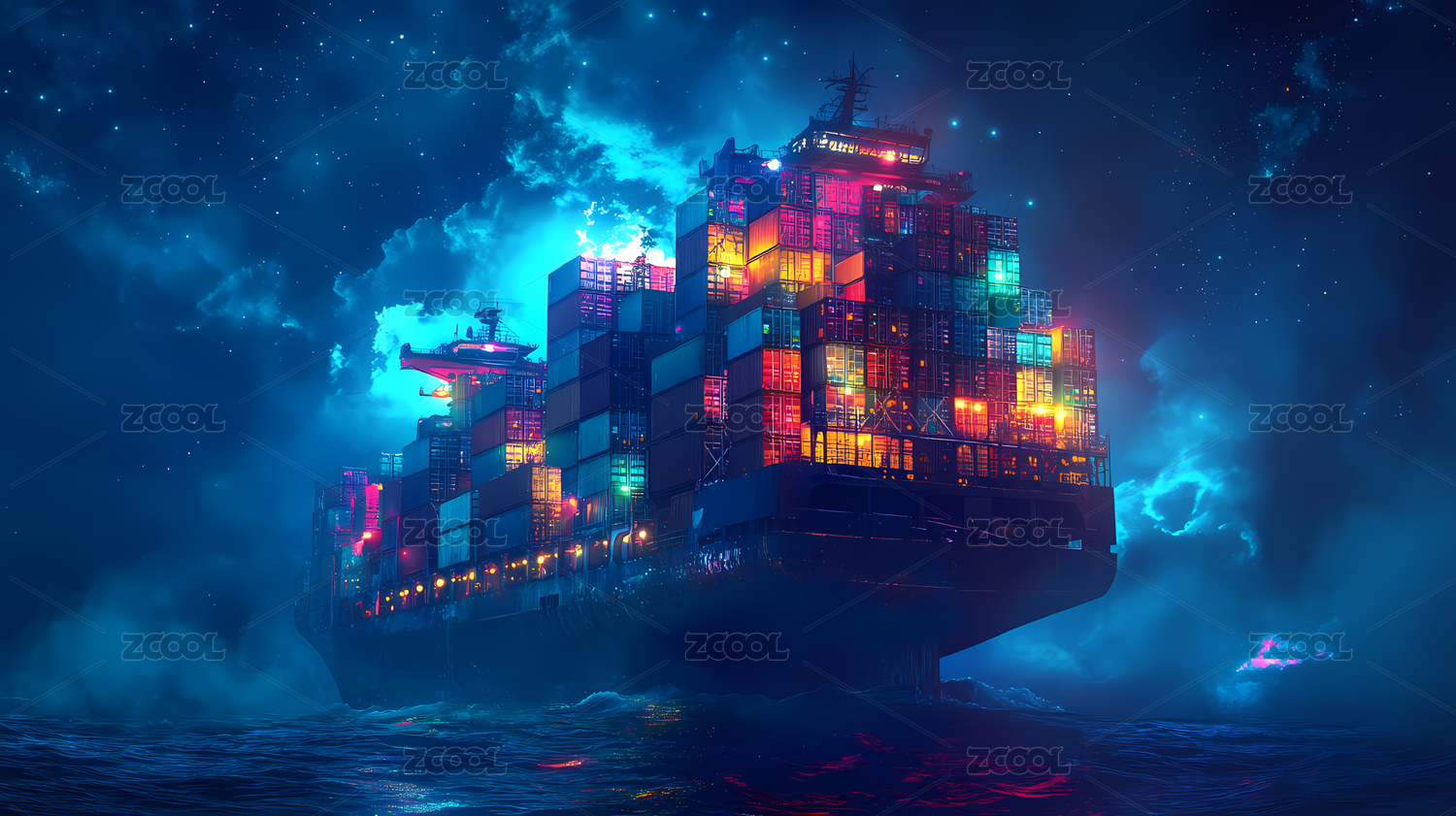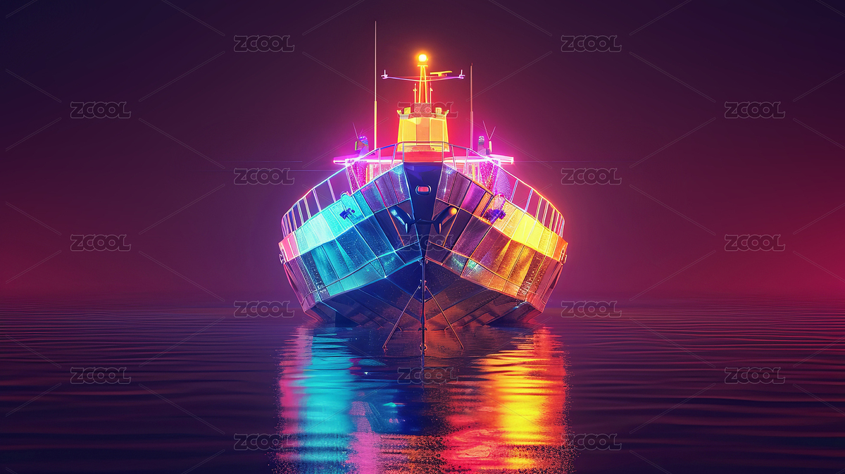 轮船,快艇,船,小船,玻璃,透明,彩色,发光,可爱,黑色背景