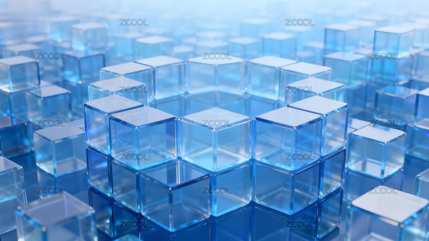 蓝色透明立方体堆叠