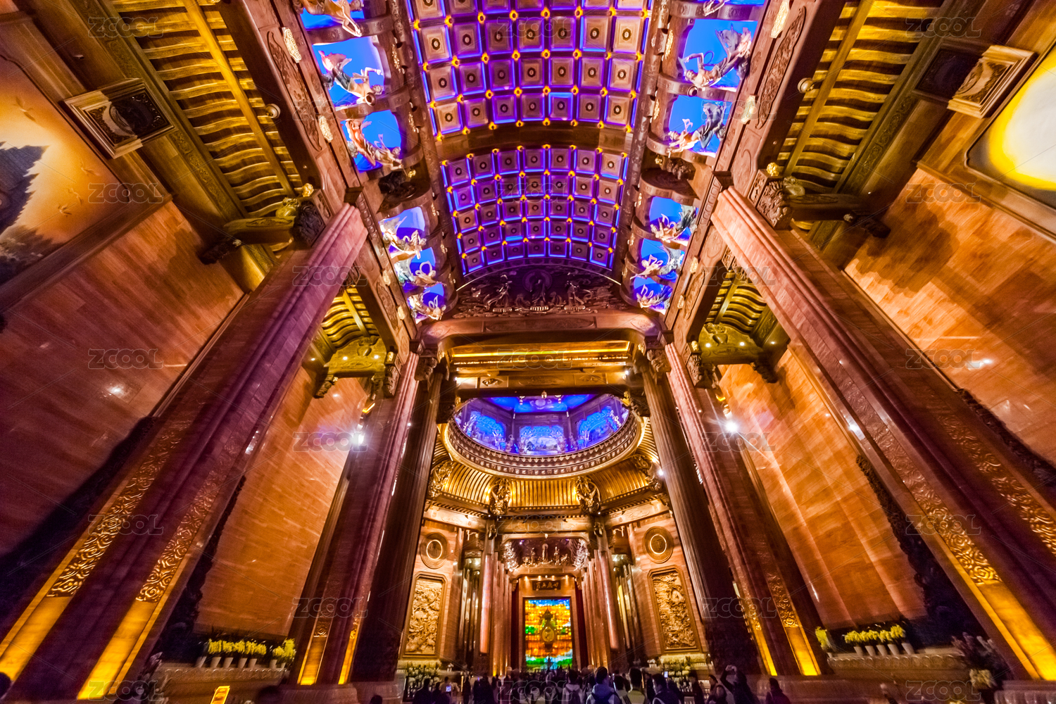 灵山梵宫百米廊厅弧形天花板上密布飞天图案