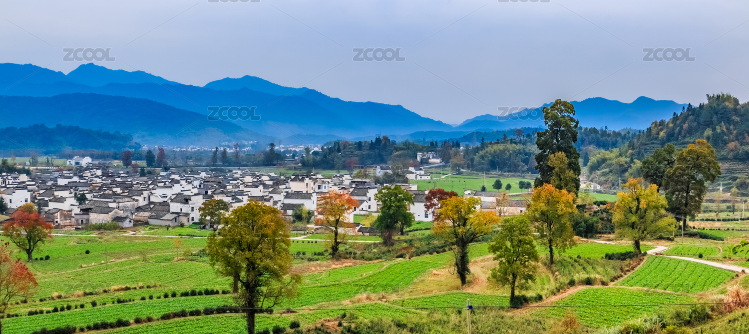 安徽徽州黄山黟县皖南徽派建筑秋色卢村村落