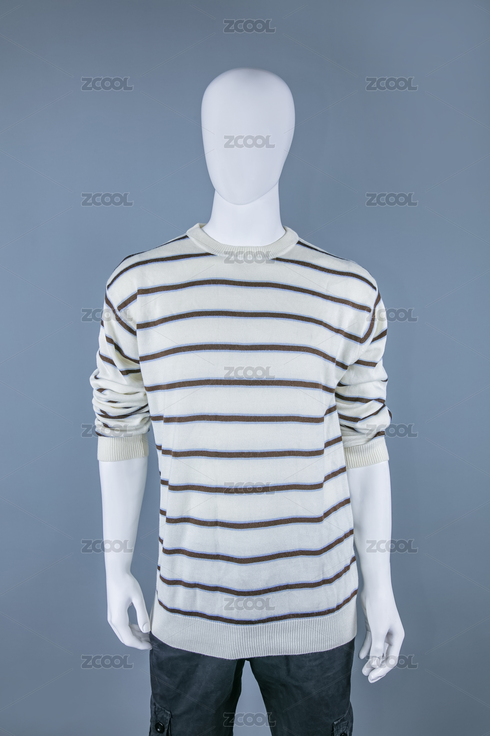 民国风男式冬季白色横条纹长袖保暖毛衣服装