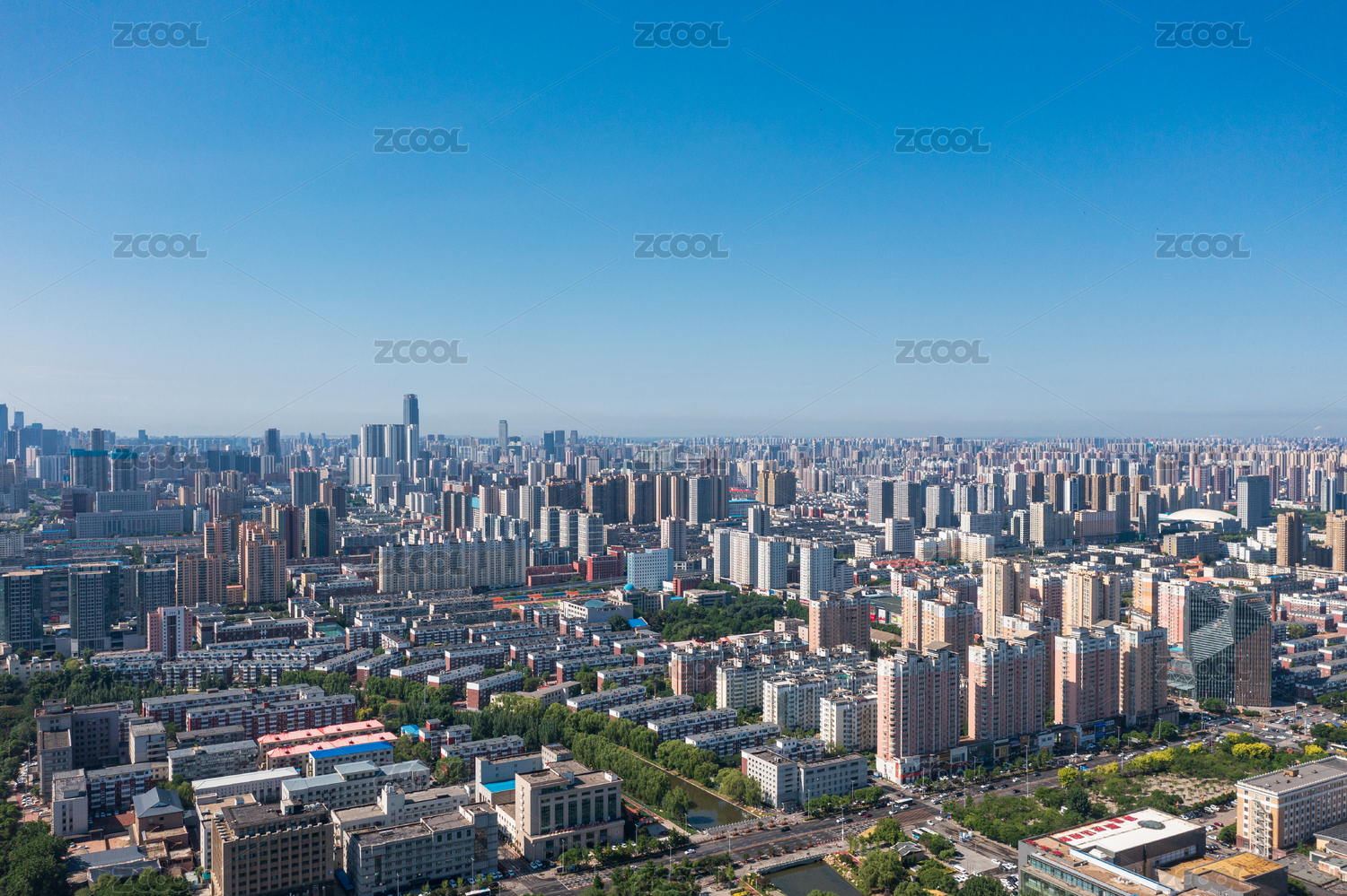 夏季白天郑州郑东新区全景航拍视角