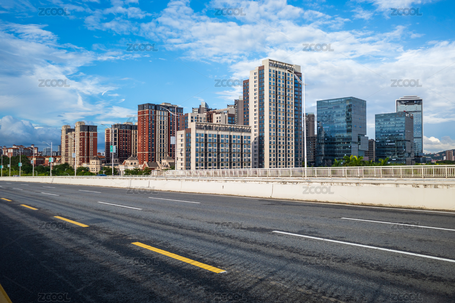厦门城市高速公路旁的宽阔道路与蓝天白云