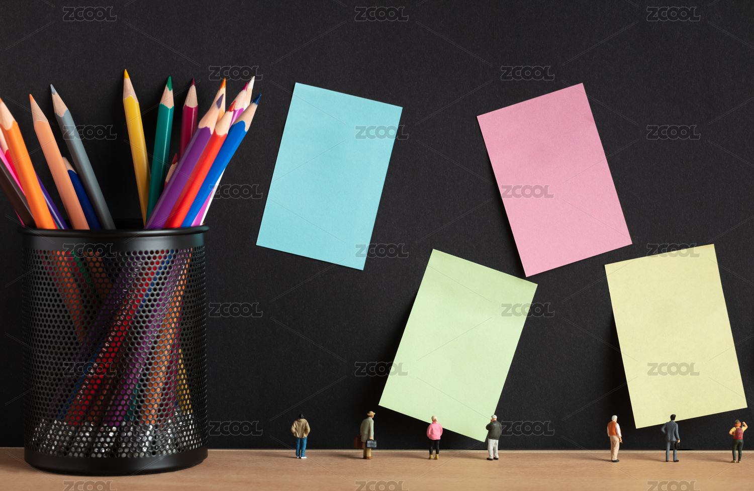 黑色背景下,白色桌面上闹钟与铅笔筒里装着彩铅的静物摄影象征着学习和教育,拼搏与努力,教师节快乐