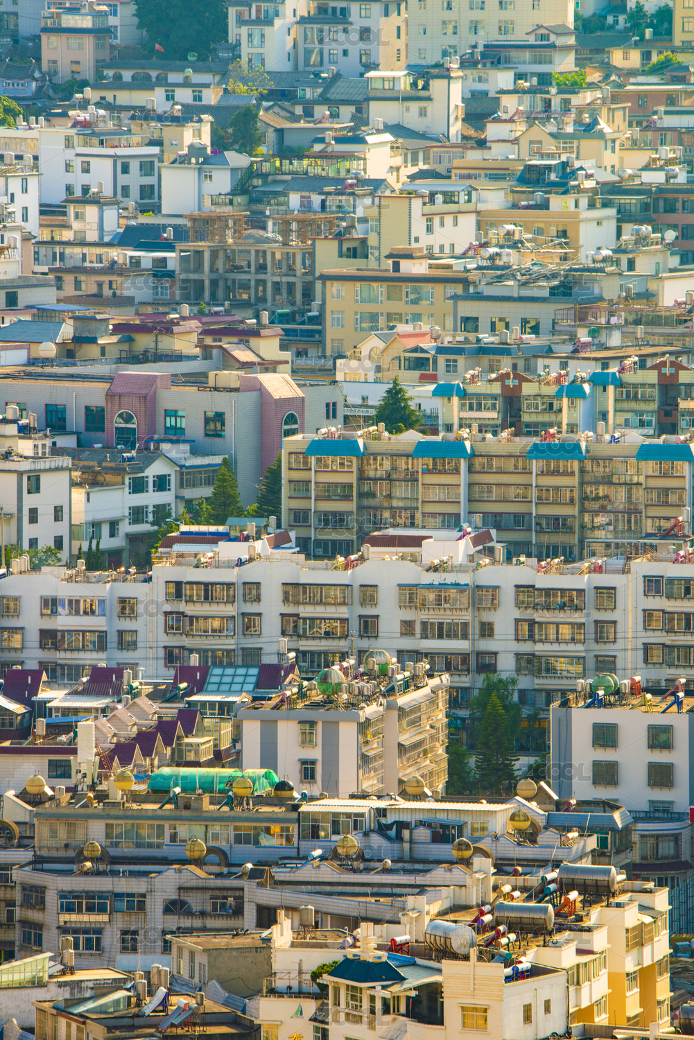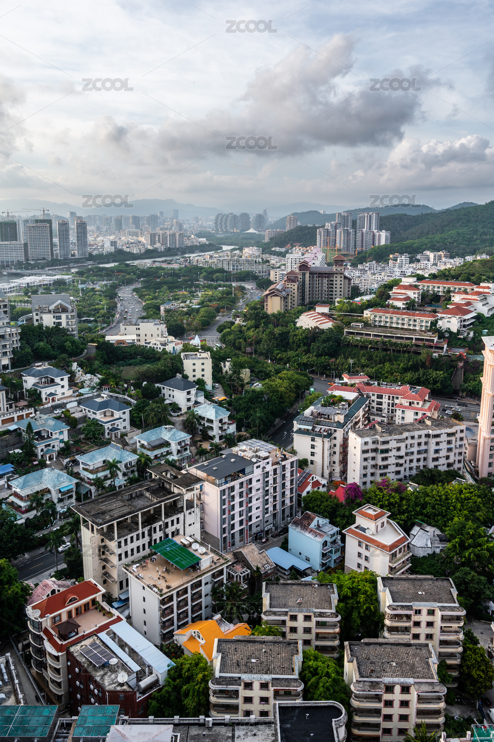 俯视的中国广西南宁的城市住宅楼和别墅群