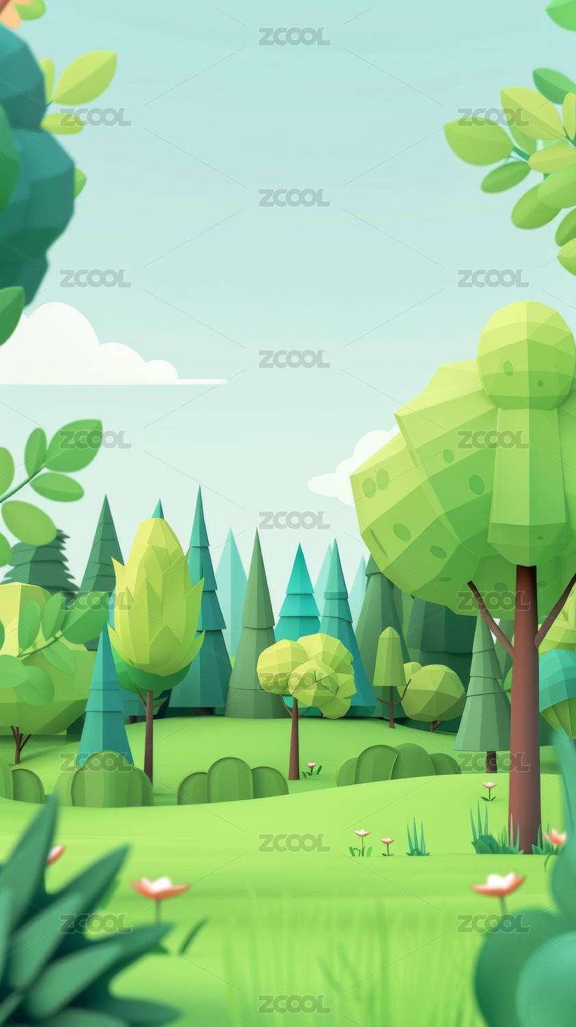 3D绿色森林树木背景