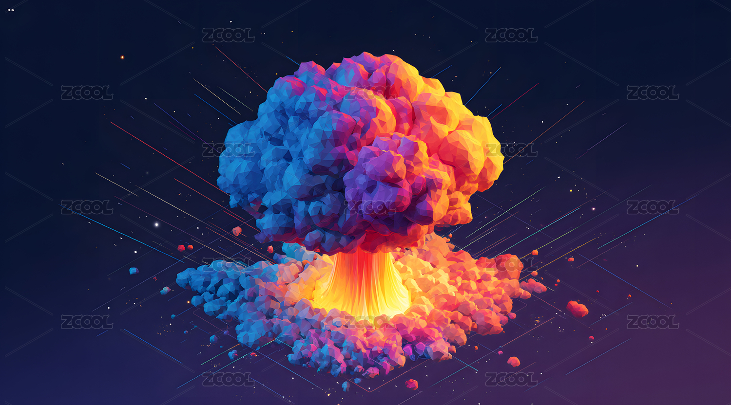 爆炸,烟雾,粉尘,飞溅,蘑菇云,隔离,孤立,多彩,地面,升起