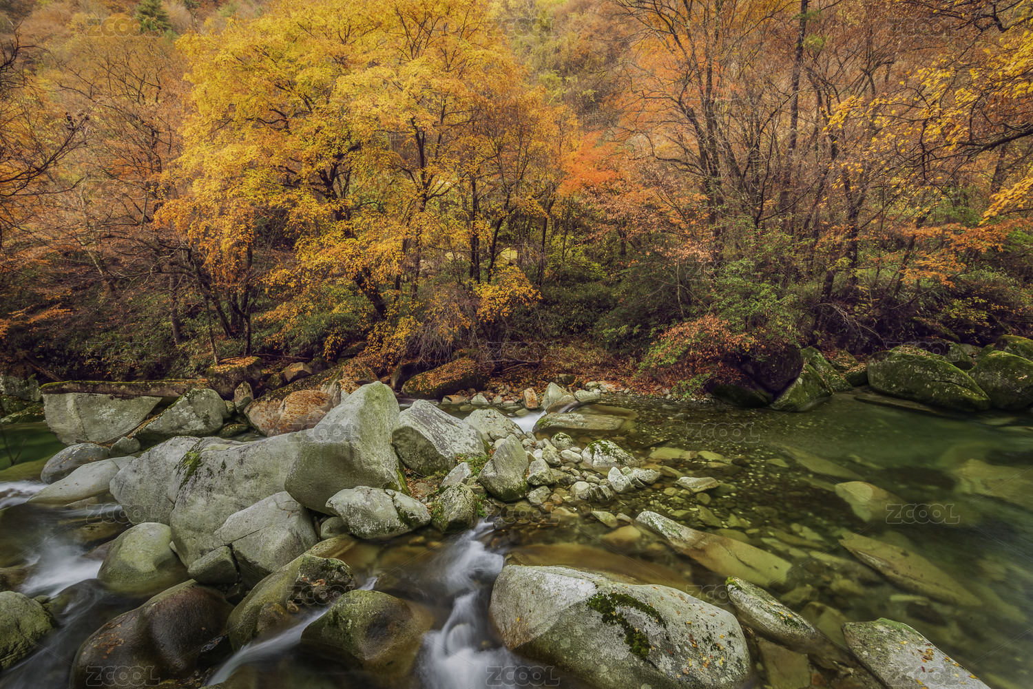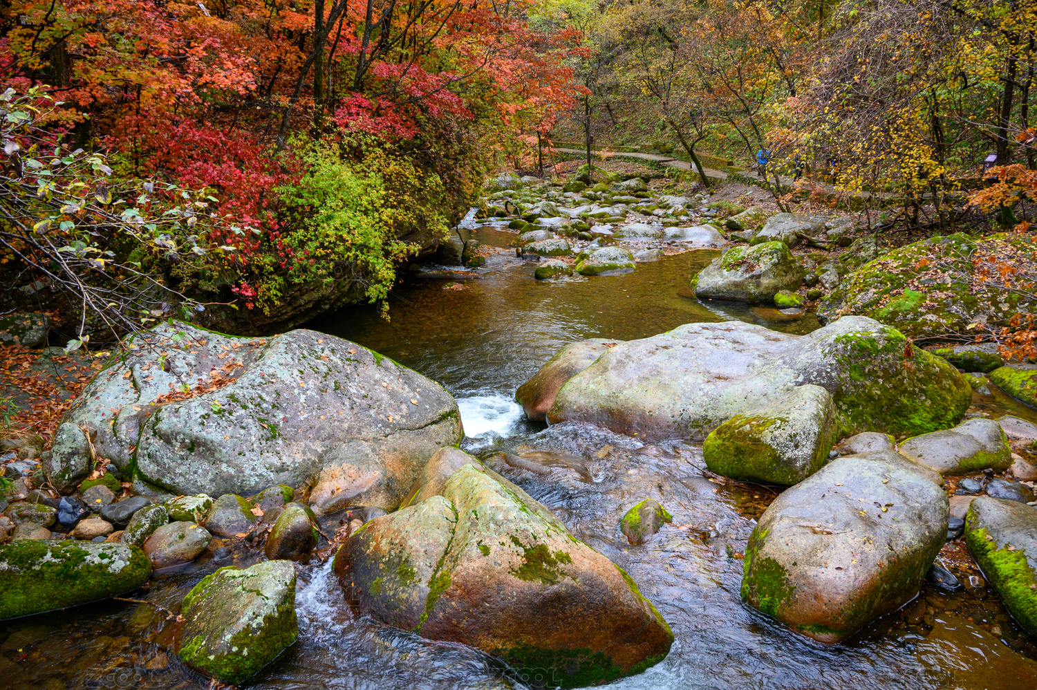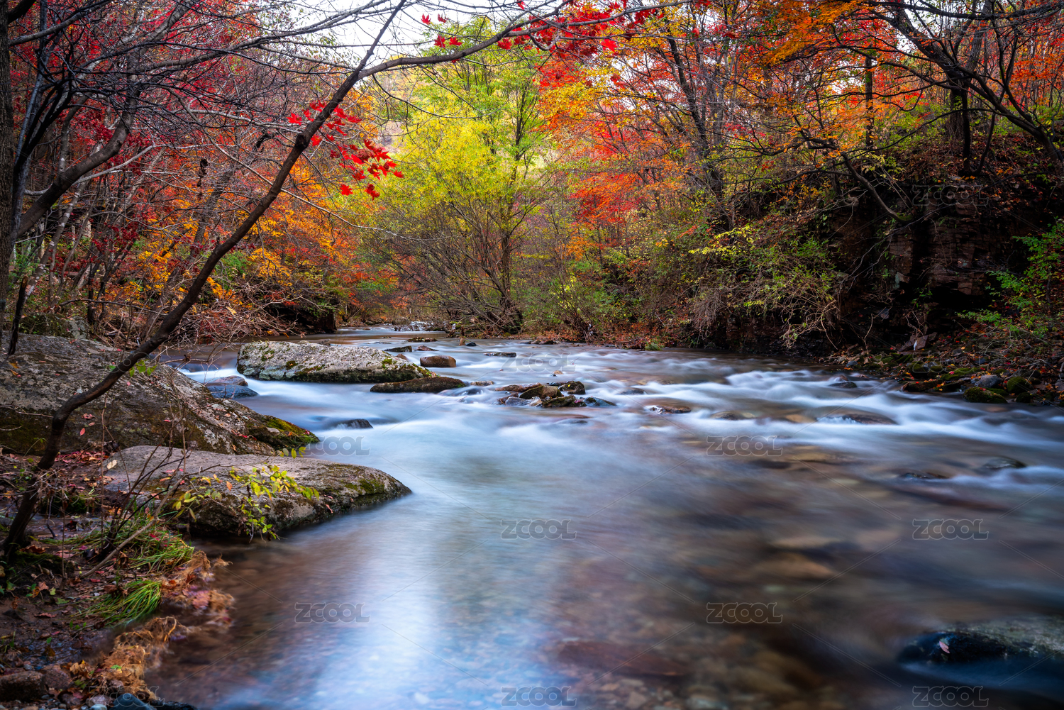 沈阳本溪老边沟,秋季枫树红叶溪流自然风光