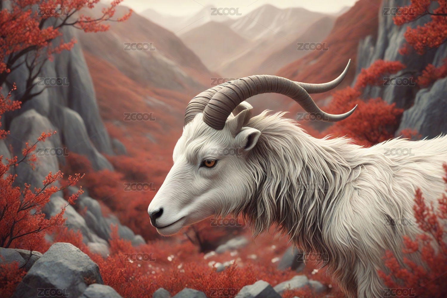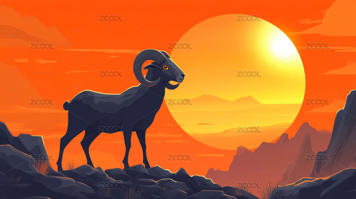 重阳,重阳节,山羊,羊,秋天,九月九,登高望远,新工笔,金黄色,秋季