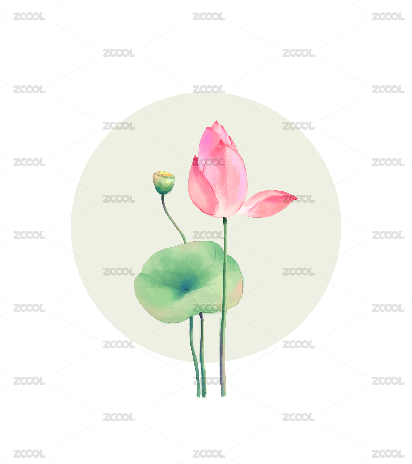 荷花水墨水彩中国风工笔画水墨意境荷花插画