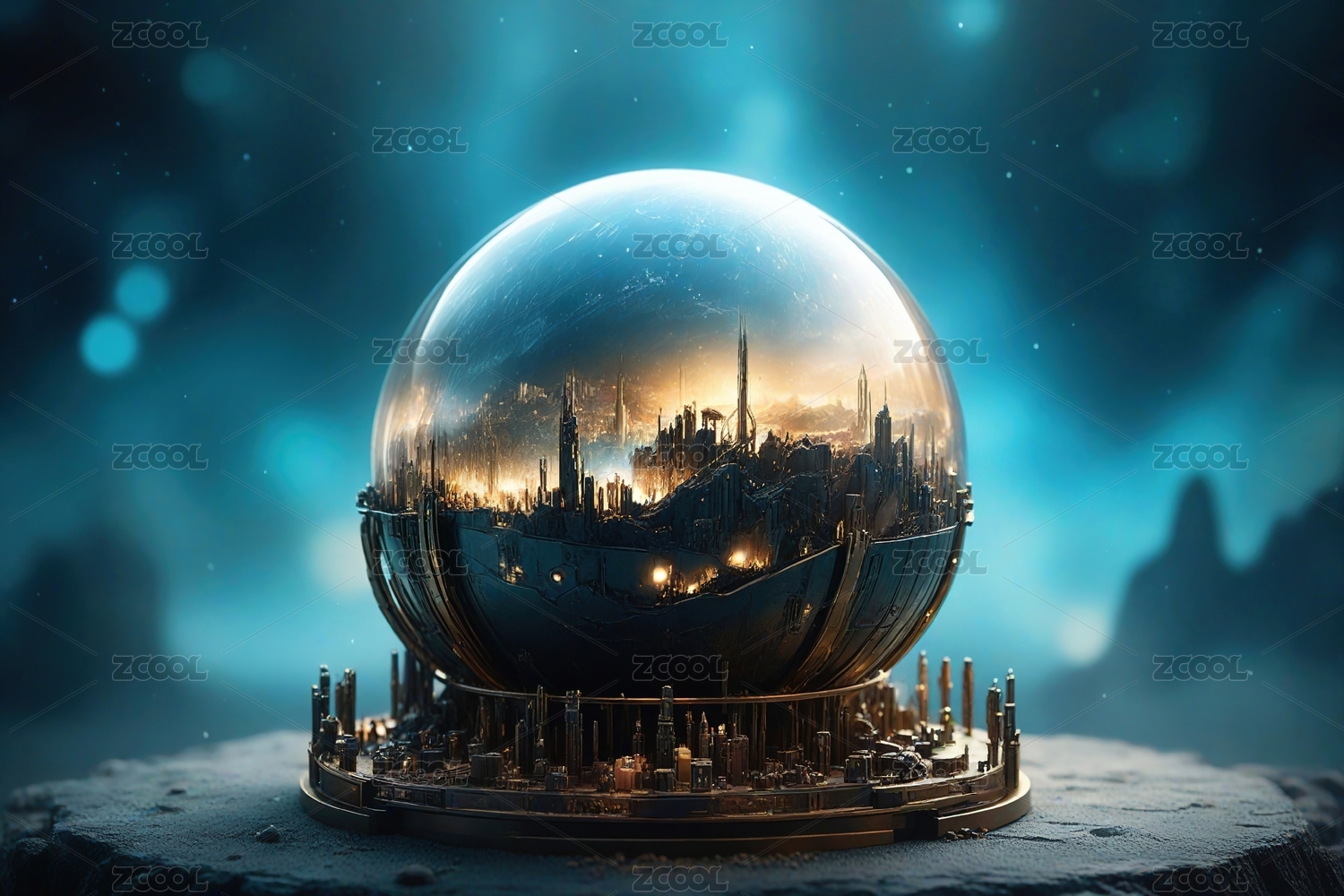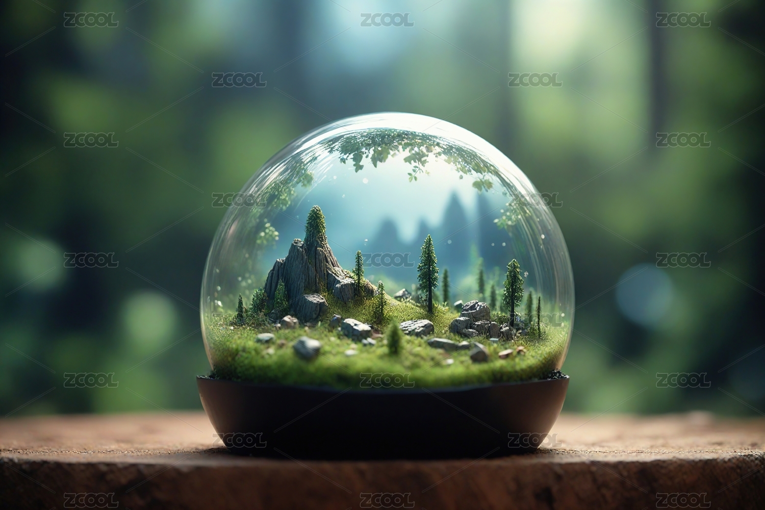 森林,玻璃,球体,树木,草地,花朵,光线,阳光,云朵,梦幻