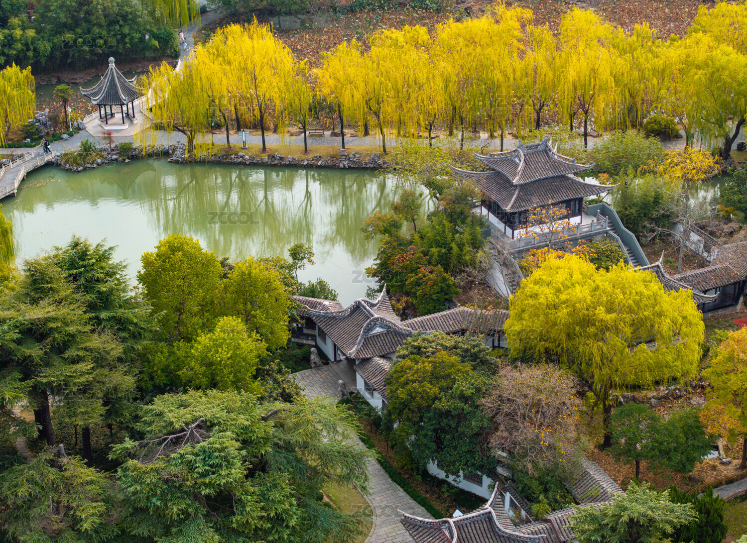 园林,江苏,色彩斑澜,初冬,淮安,清晏园,银杏,水杉,垂柳植物,叶子