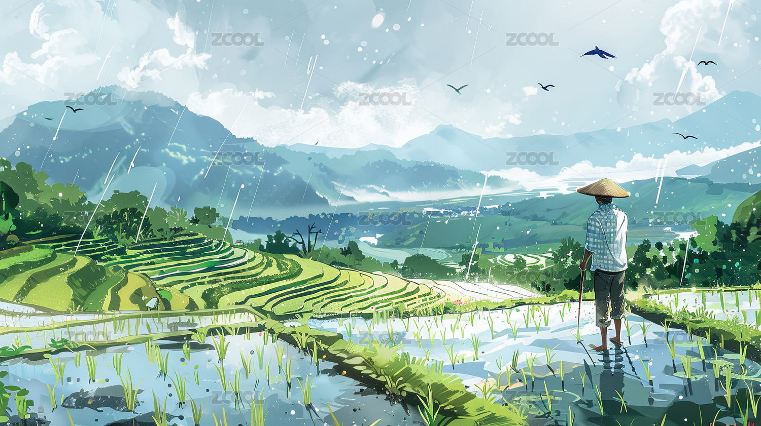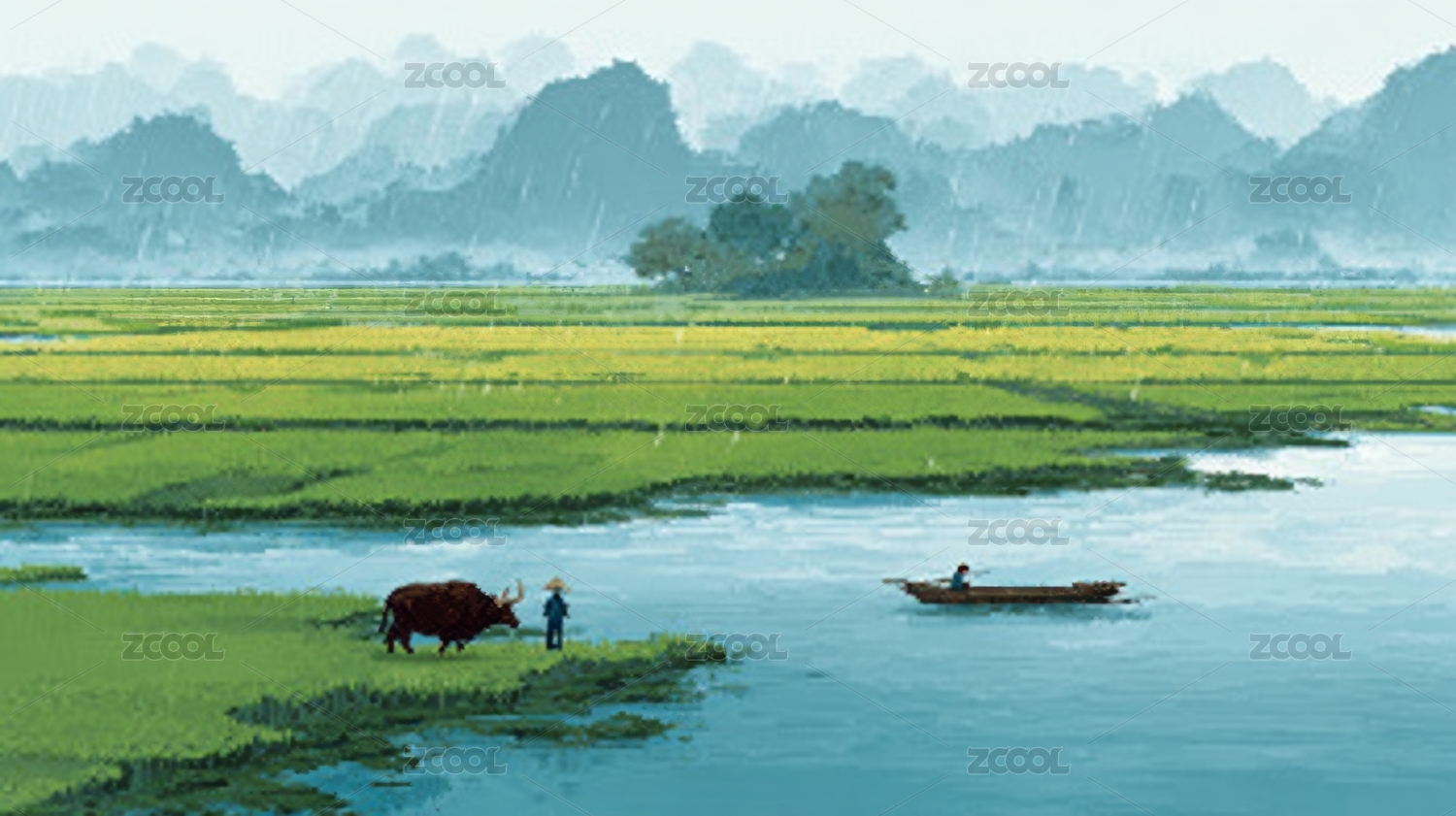 midjourney,清明节,节气,二十四节气,清明,雨,竹林,江南,南方,稻田