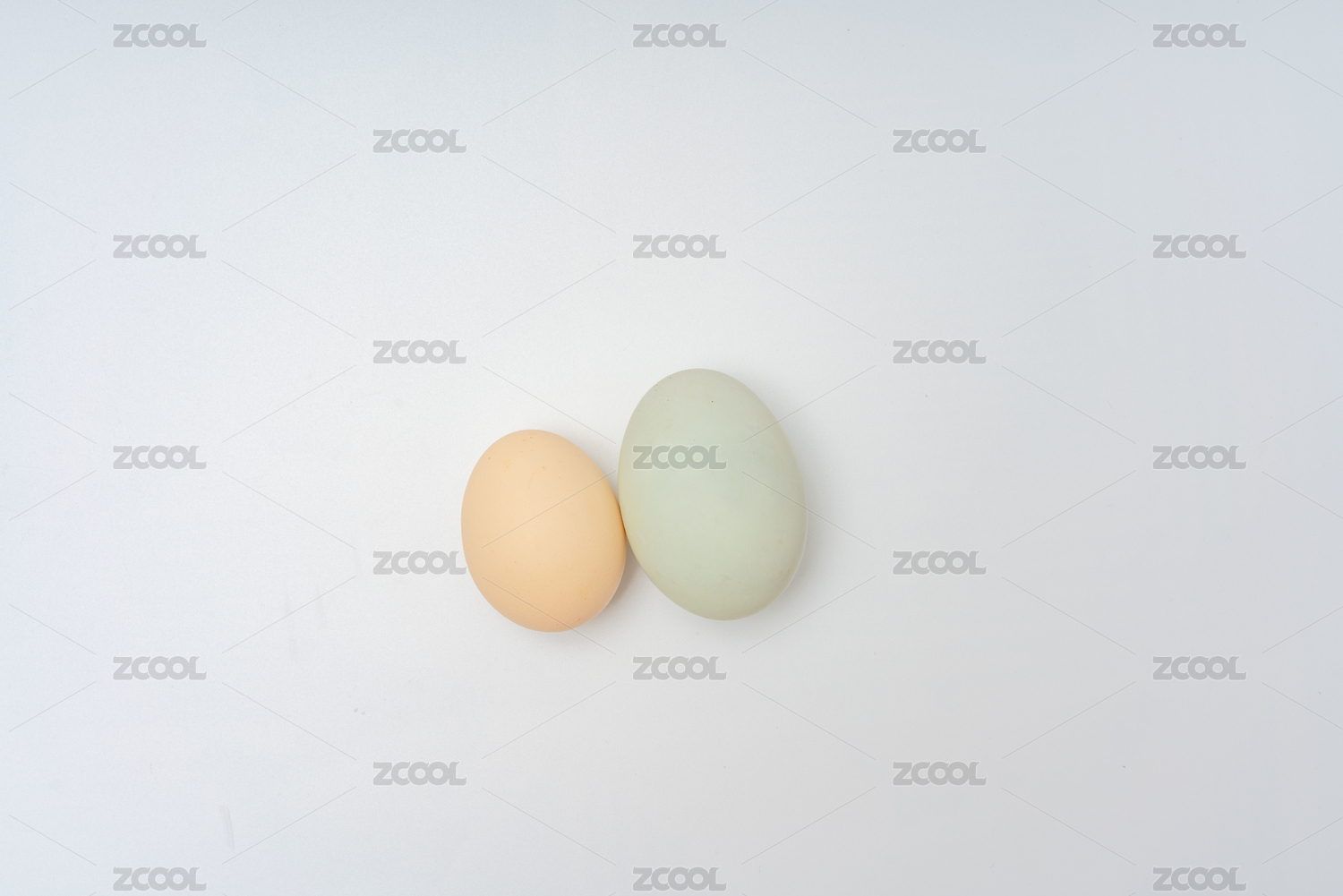 俯视角下在白色背景上的鸭蛋鸡蛋组合