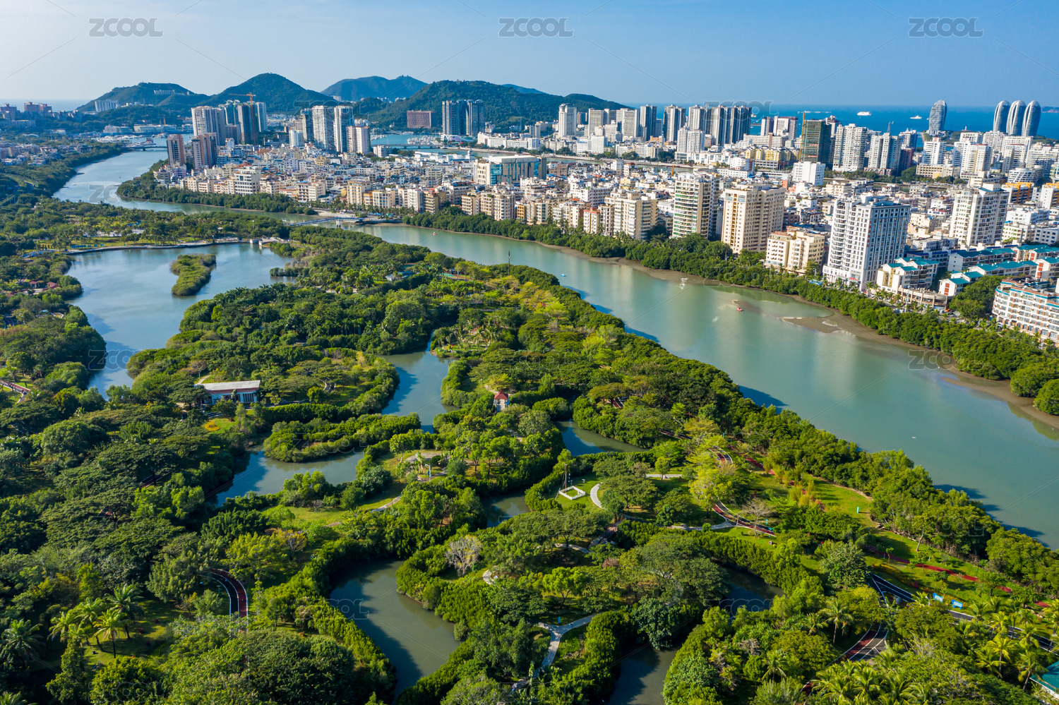 海南,三亚,天涯,红树林公园,城市乐园,红树林生态公园,红树林,三亚河,航拍,俯瞰