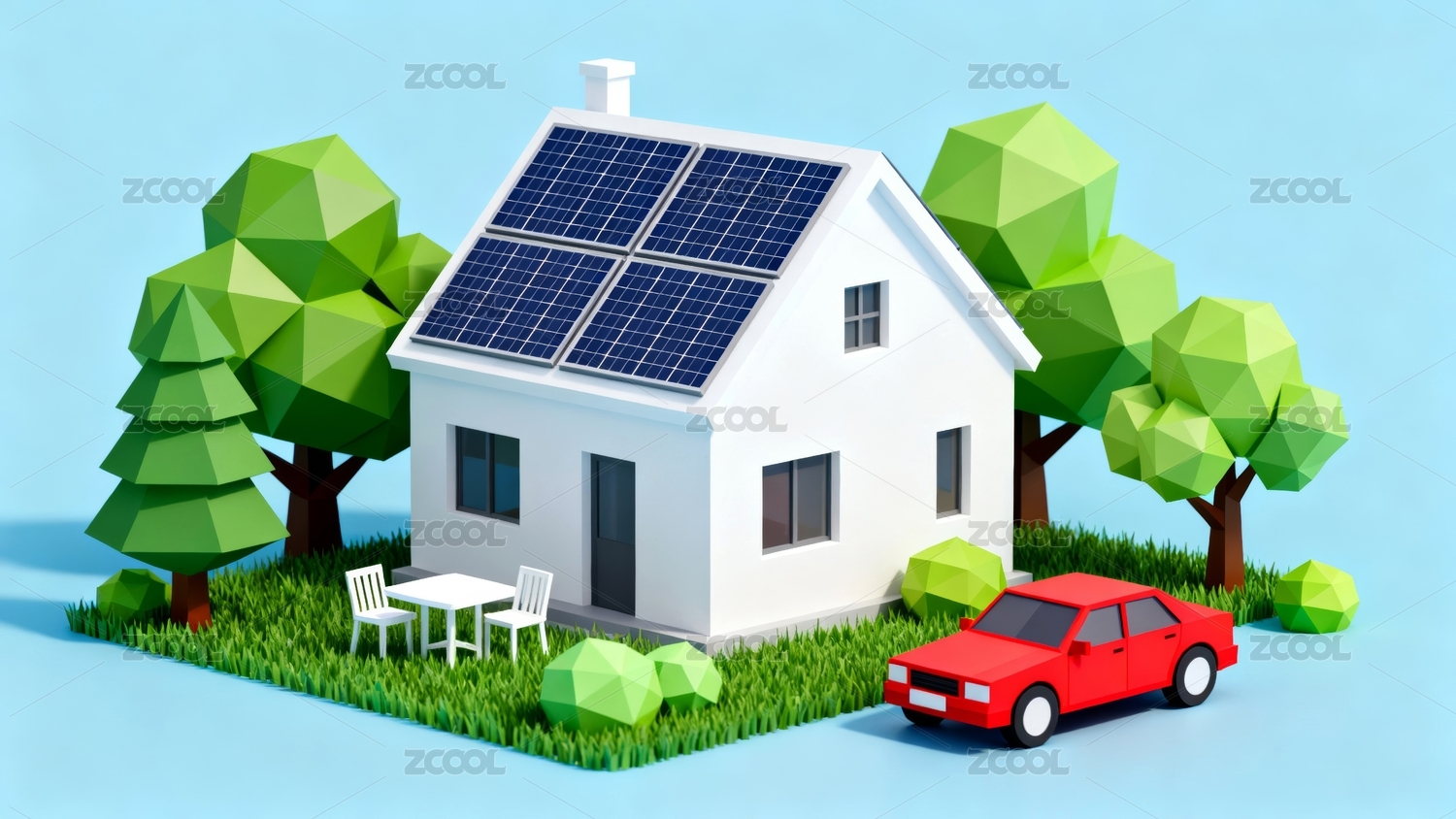 房子,太阳能,板,电动车,绿色,云,天空,粉彩,颜色,动画