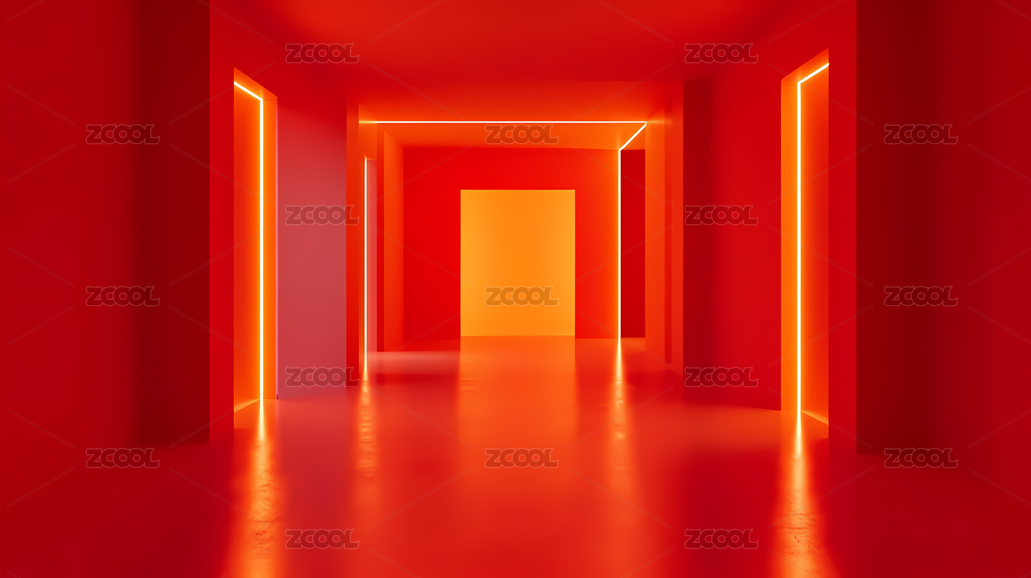 抽象红色房间与发光门廊