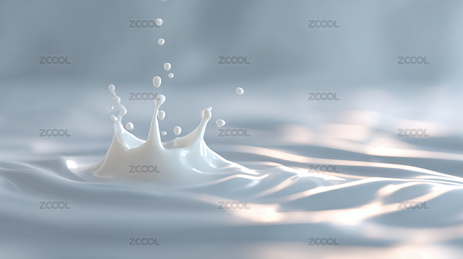 灰色背景上牛奶飞溅 形成动态水花与水滴