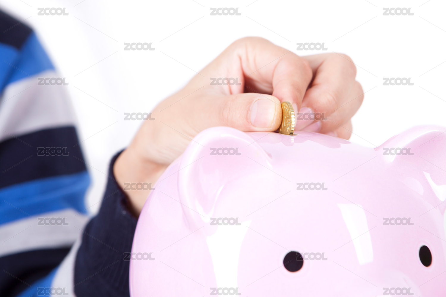 小孩子的手在存钱罐里投入硬币