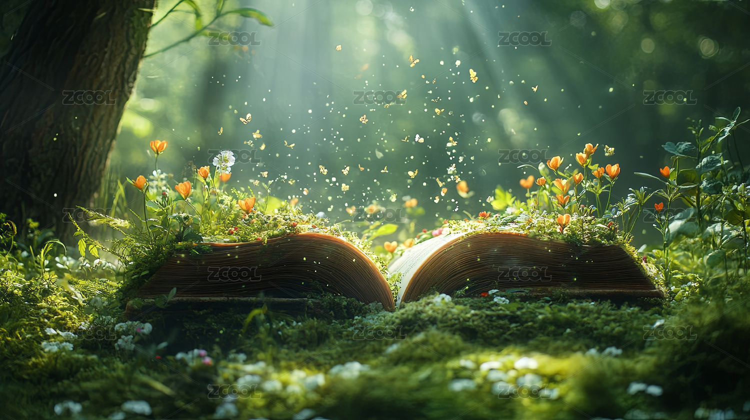 书籍绿色植物创意场景自然神秘