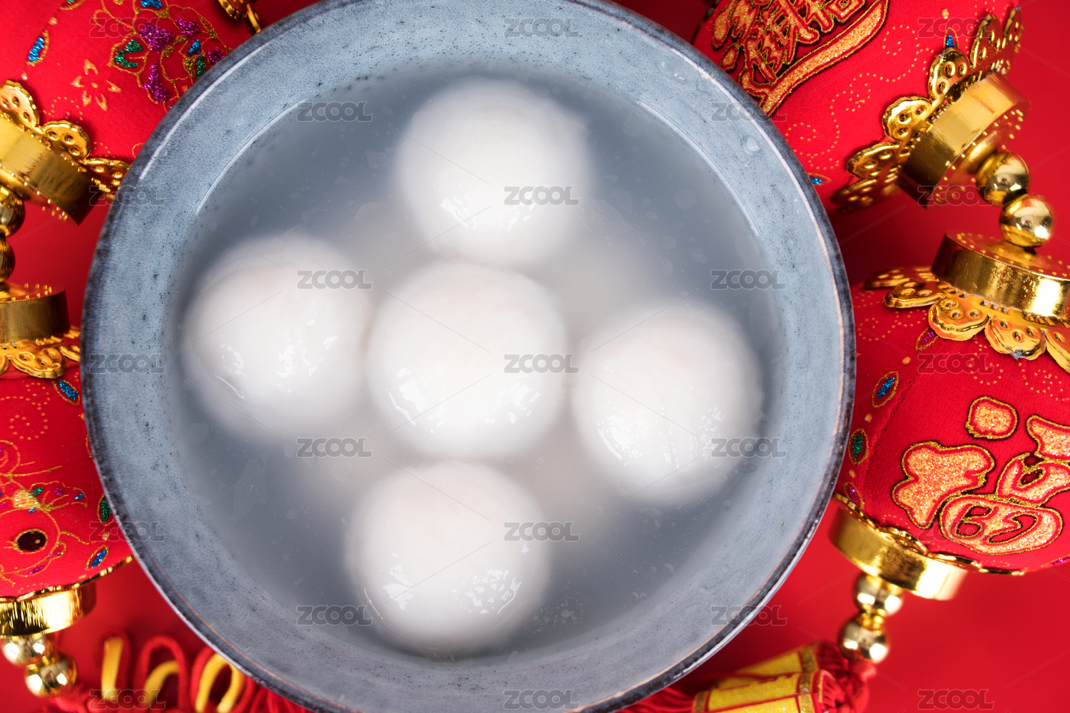 俯拍中国红折扇喜庆背景传统美食汤圆