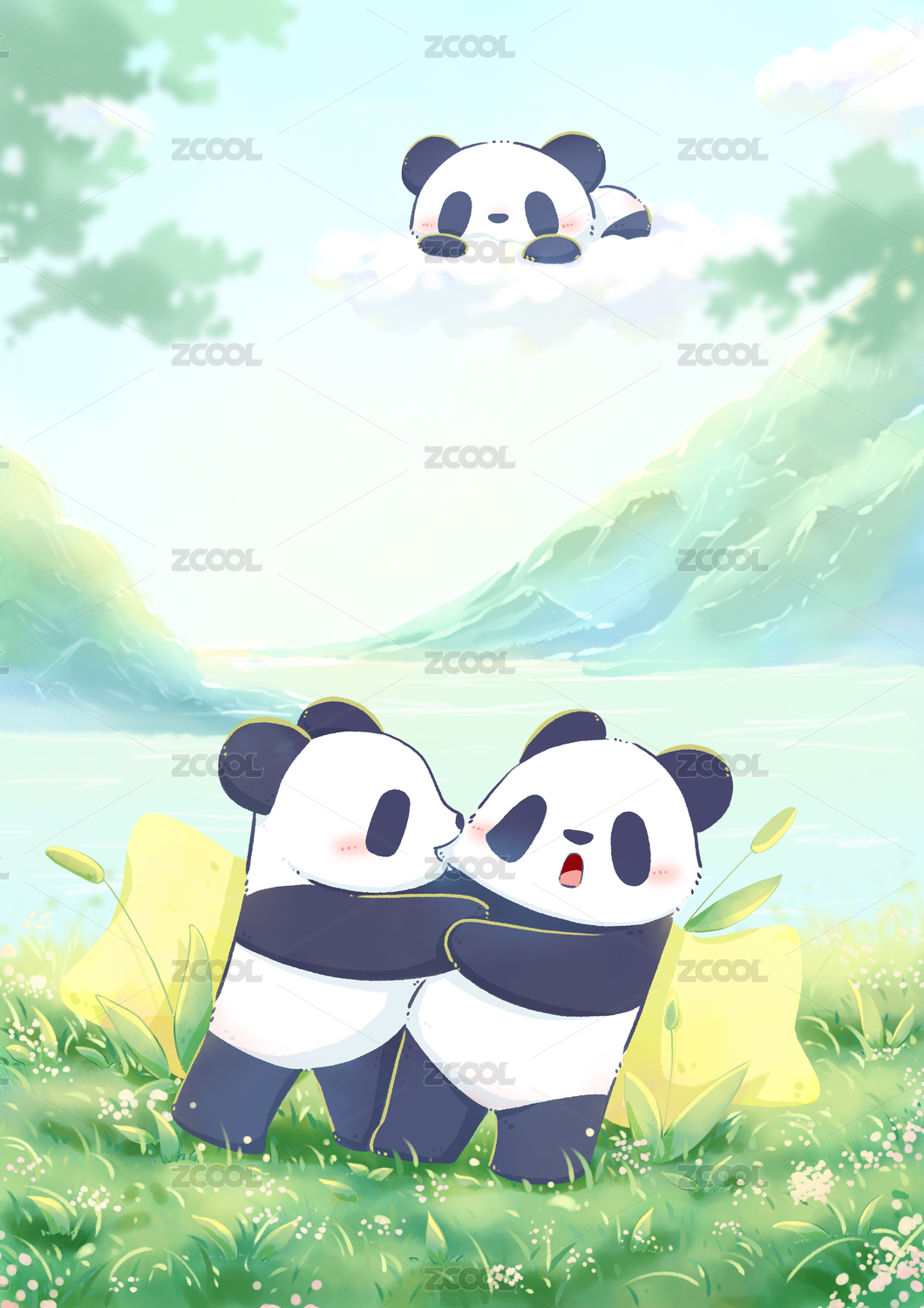 大熊猫,熊猫,国宝,可爱,萌系,卡通,拟人,治愈,插画,萌物
