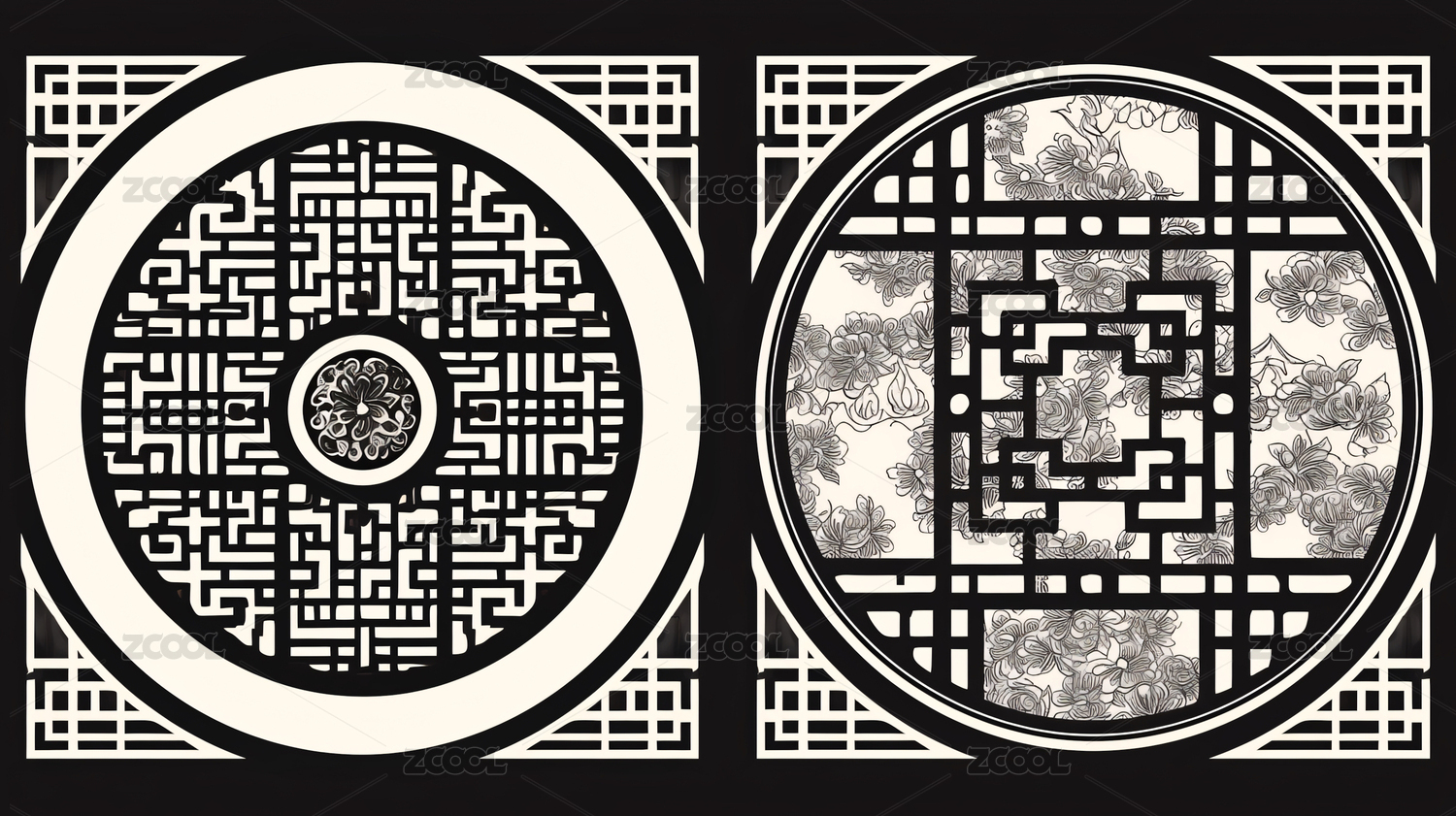 中国风雕花窗花镂空装饰图案