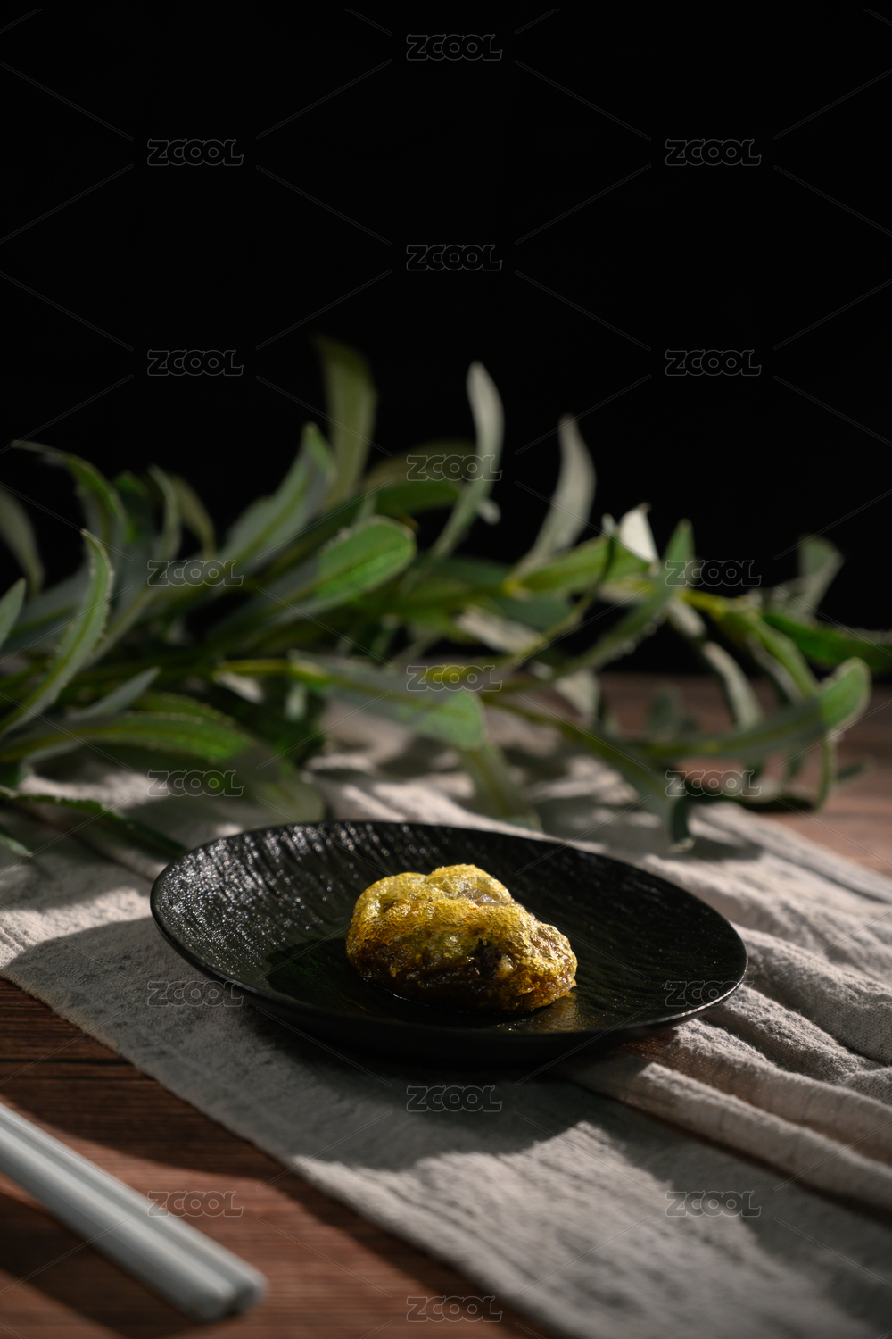 中秋节,创意,月饼,圆盘,中国风,山水,小米,树叶,摆盘,海报