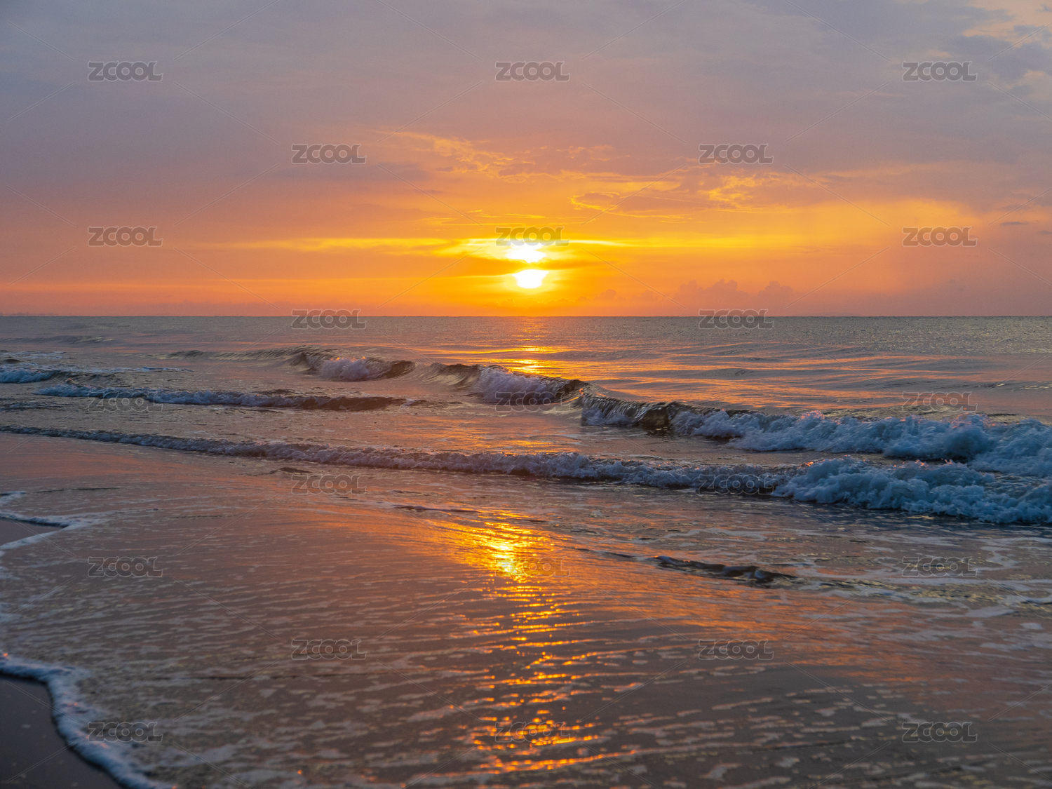 海滩日落风景图
