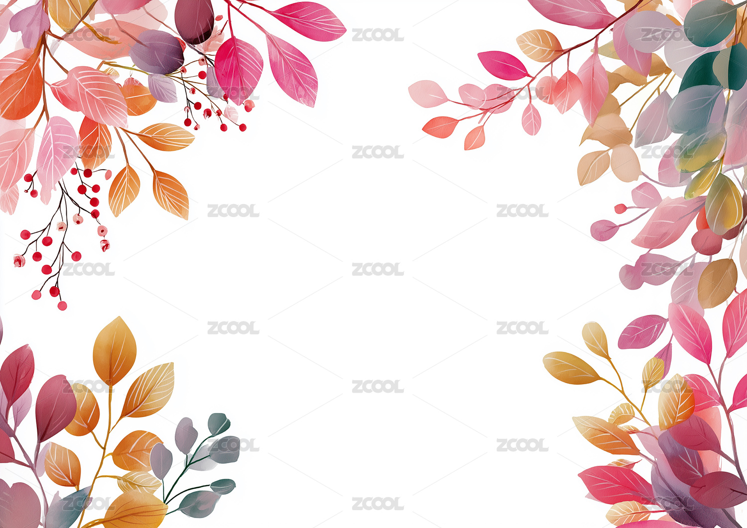 数码复古水彩秋天叶子浆果装饰抽象海报背景