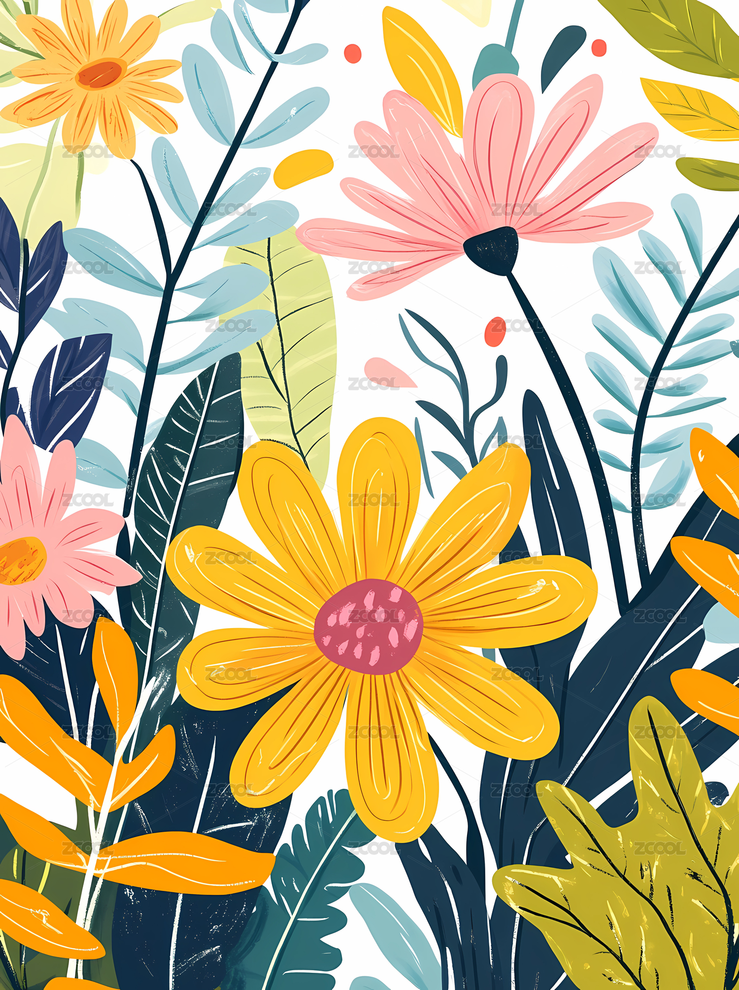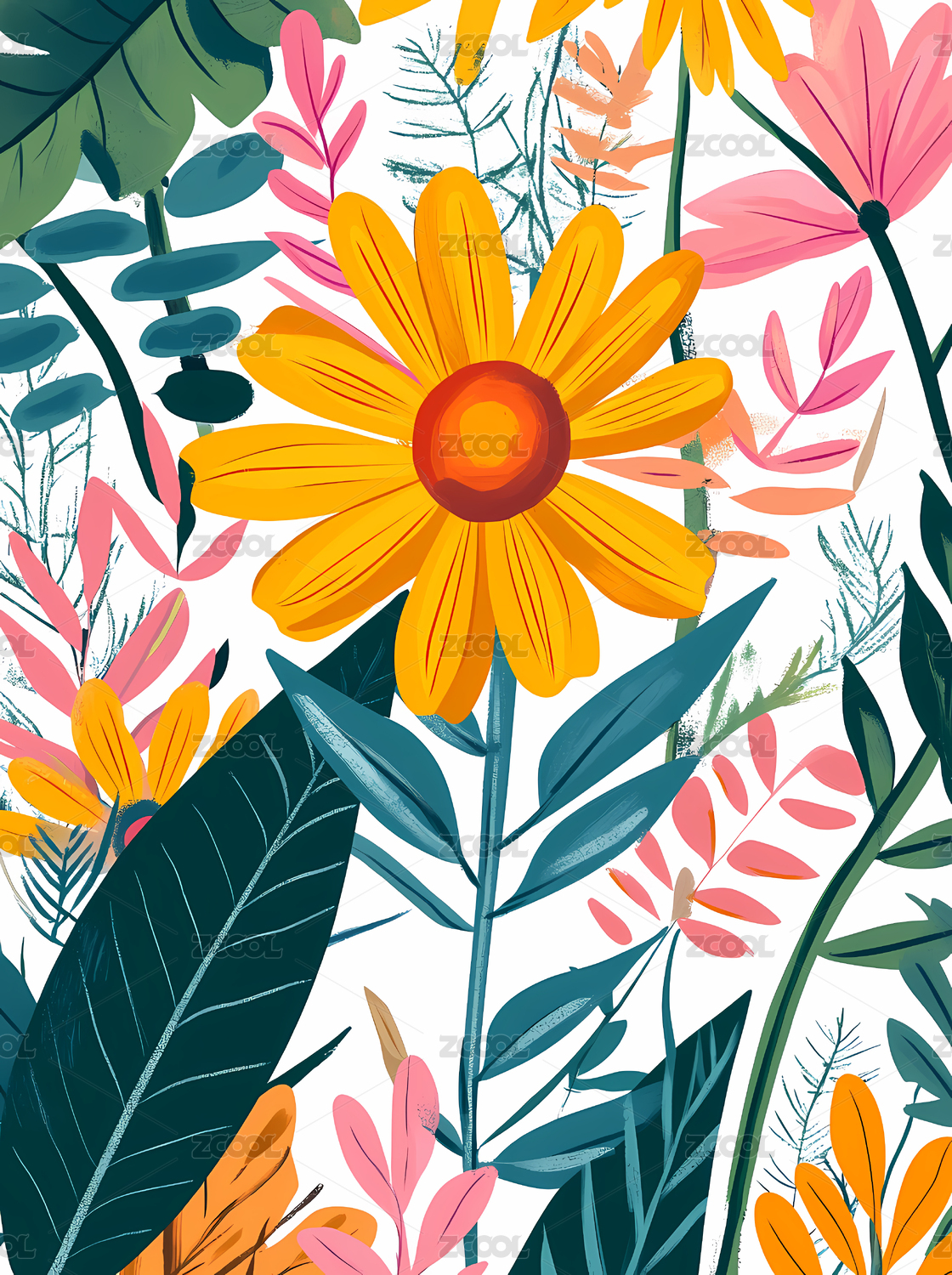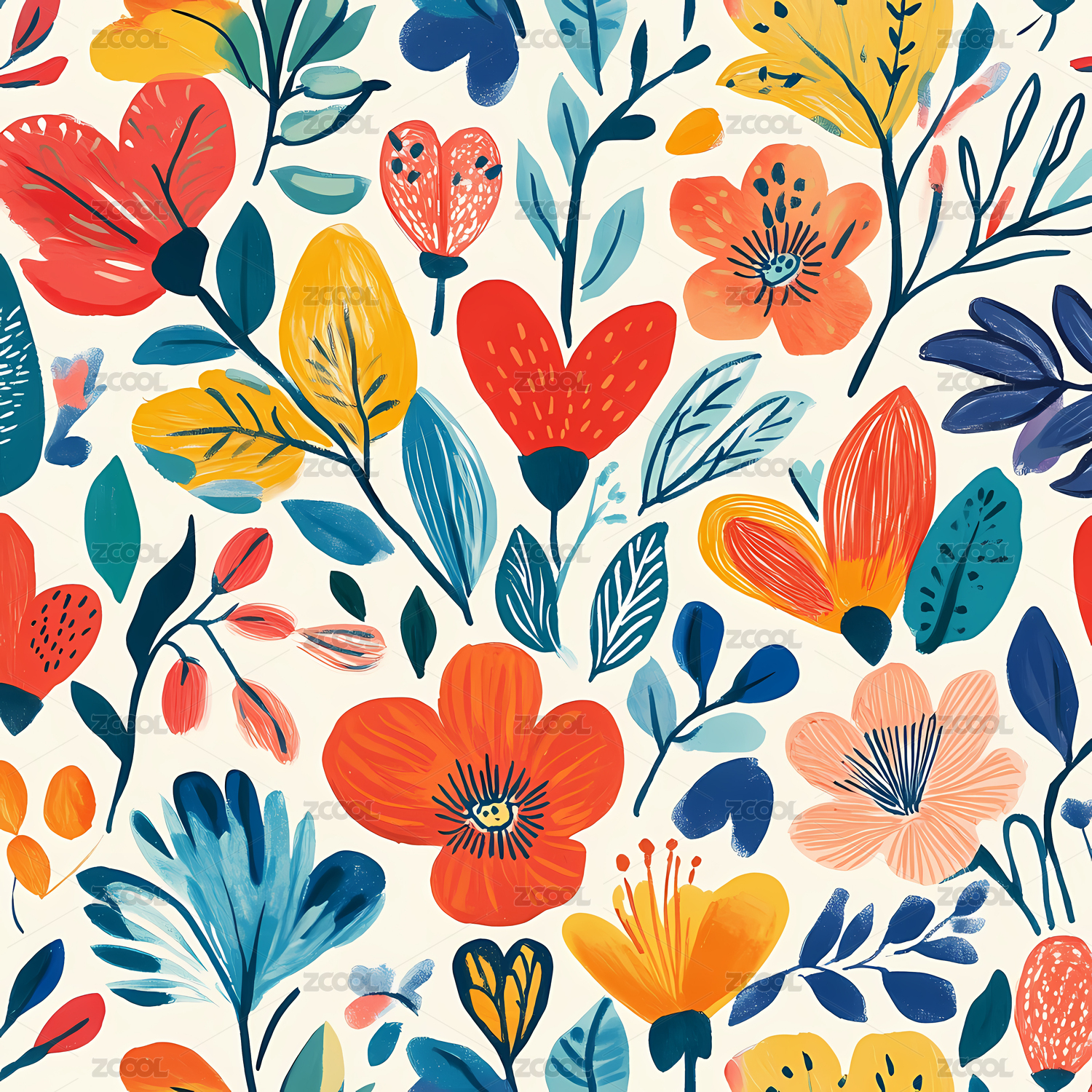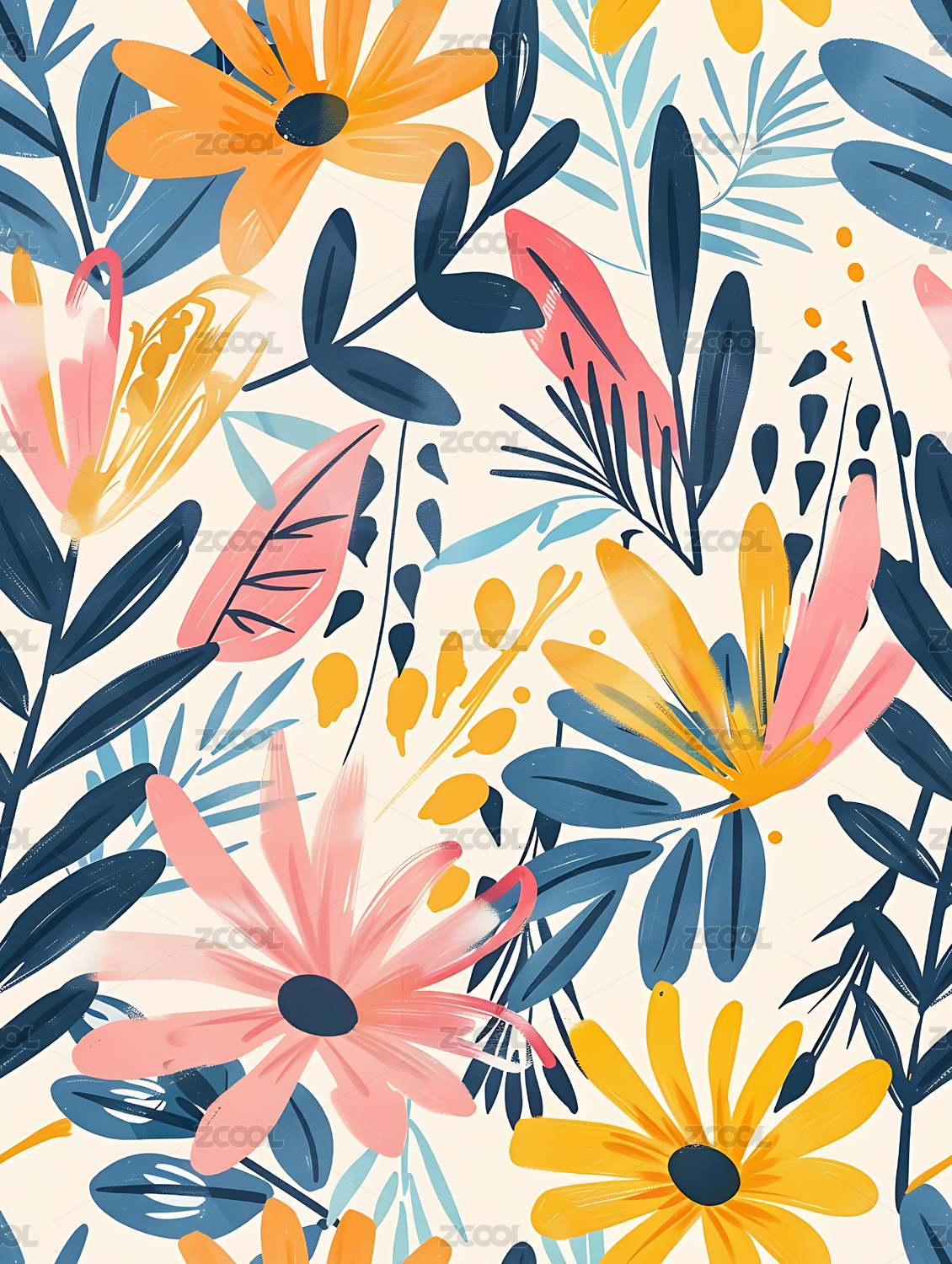 艺术,印象派,植物,花朵,树,蓝色,橘色,梦幻,抽象,形状