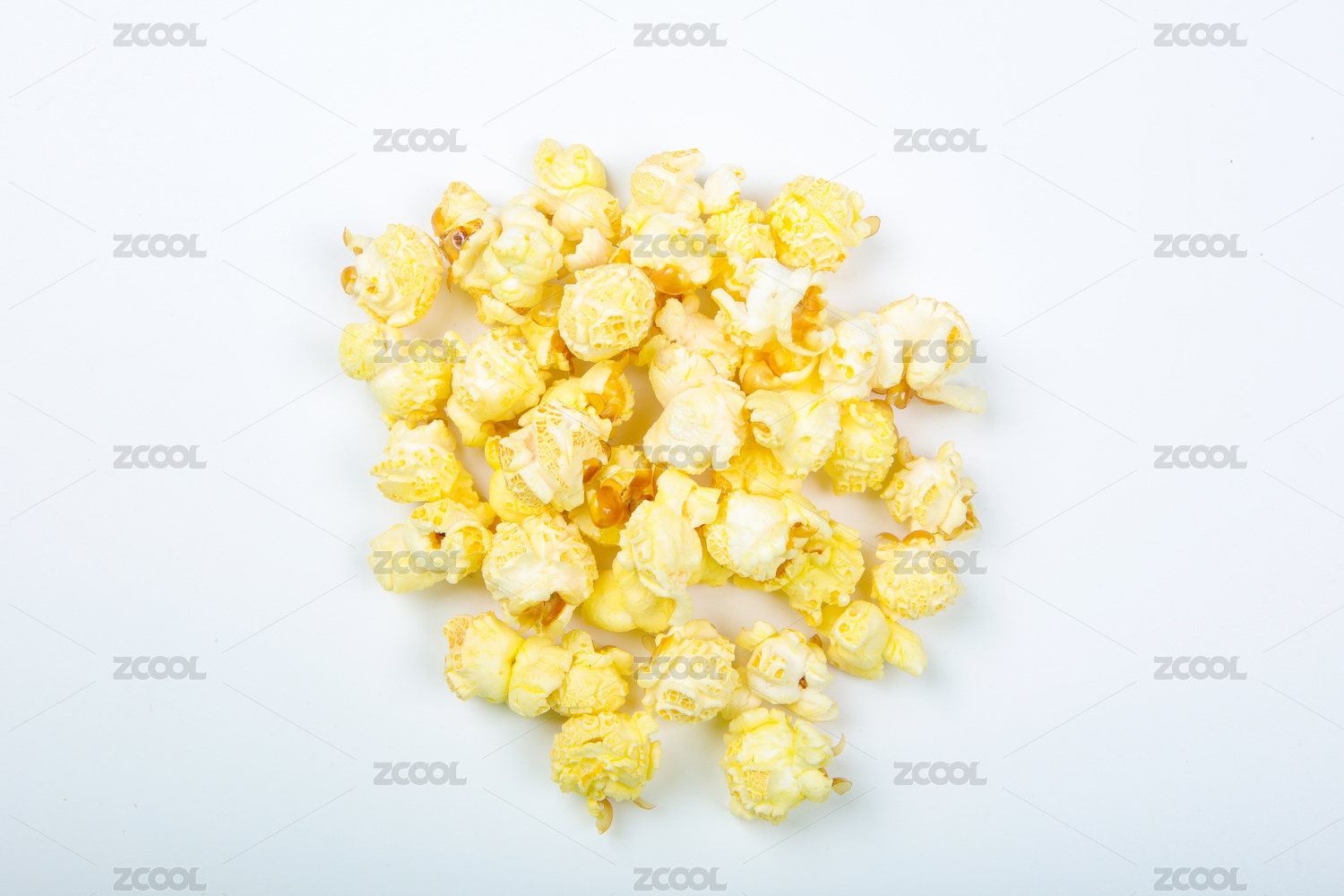 爆米花,零食,美食,节日,白色背景,排列,留白,高视角,玉米,烘焙